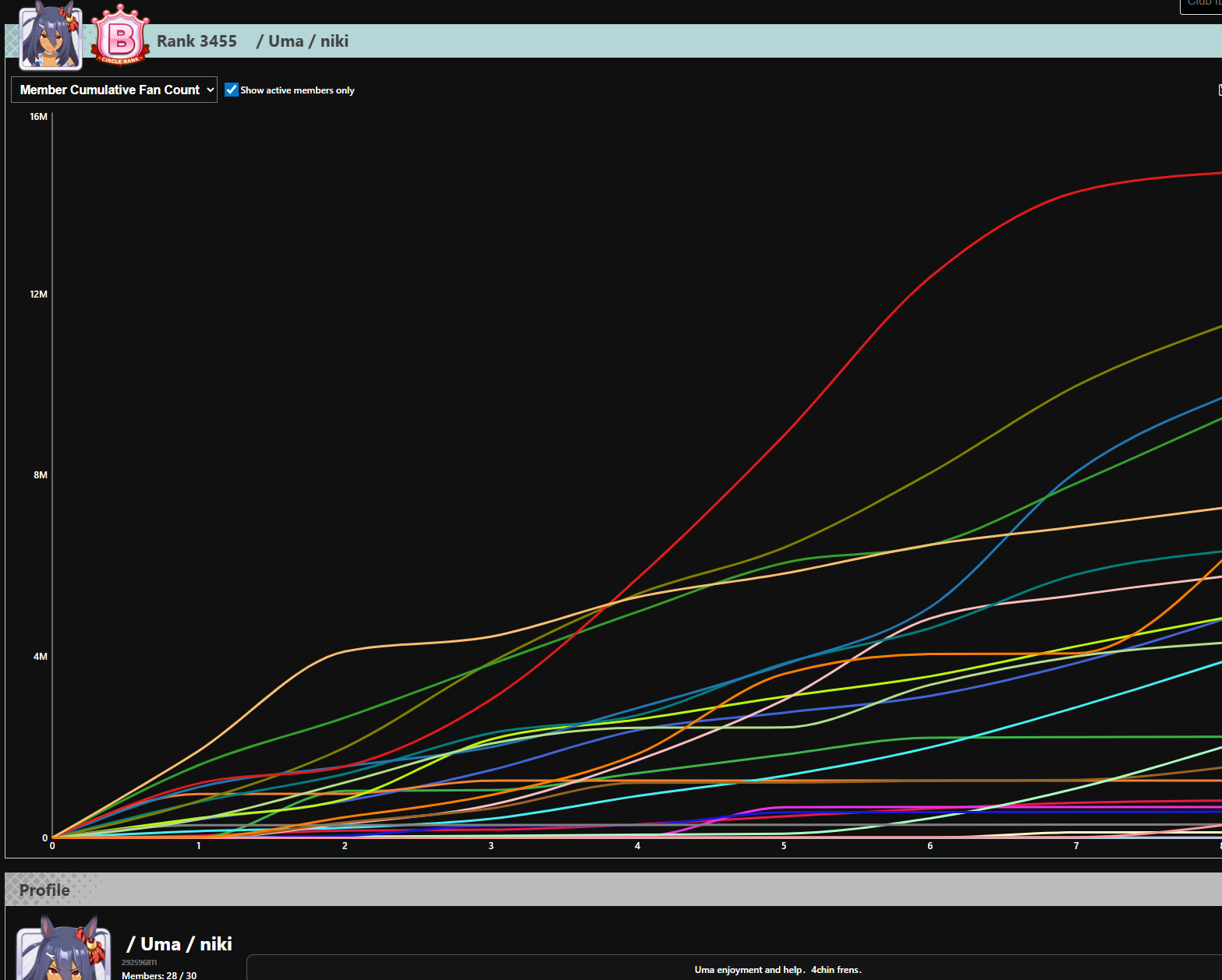 >>545874258Nah we tanked from 500 ( a tad to high for the club to be fair) down to around 700. Where we are at now once again. There was an uptick with the new scenario, but that didnt last long. The A rank really is just thanks to the 5 or so fan runners in the club. Without them it would be a B club I think, which is fine too. Really there is only one flatliner and maybe 2 other that dont play a lot daily. That being said, it really sticks out. It's not all doom and gloom, but quite noticable since someone put a spotlight on it