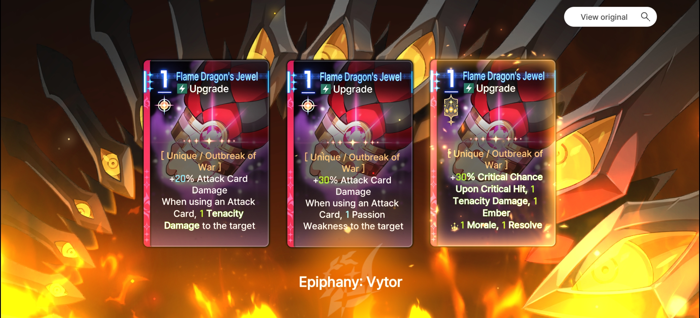 >>545885186He does have one issue though kek, his Upgrade card, which he relies on for Hunt stack, on Epiphany can lose it's Outbreak of War tag, which means you no longer guarantees to get it on turn 1. Out of 5 of his epiphanies only 2 has it, so bricking is a real possibility. So if you ever have the opportunity to duplicate his Upgrade card before it gets the Epiphany always go for it to avoid bricking. If you have 1 for the Outbreak of war, having the 2nd one with the 50% extra attack is pretty good for this damage