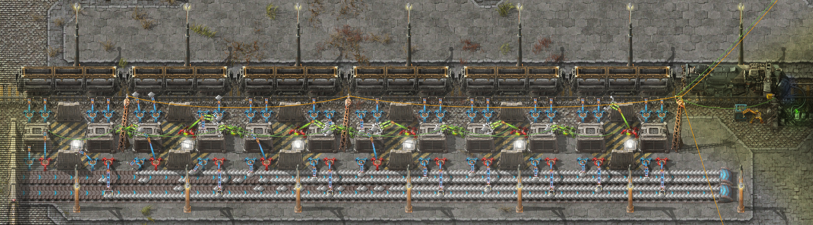 >>545936674alright so1) the half yellow belt can only give 7.5 yumako, and I'm eating 10, which means I need to replace one of the yumako fruit inserters with a stack inserters to get a constant 10.1/s2)All the plates need to be used up so the cycle does not stop3)Heating tower is mandatory because even with efficiency modules those 72 furnaces eat like 10 megawatts and I don't know what I was thinking honestlyother than that it should work