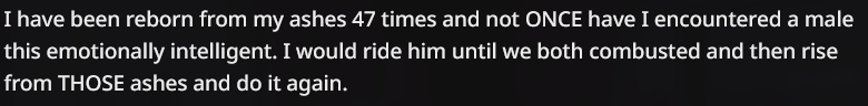 It's embarrassing to tell the model how I want it to reply, I'll swipe until it figures it out on its own.