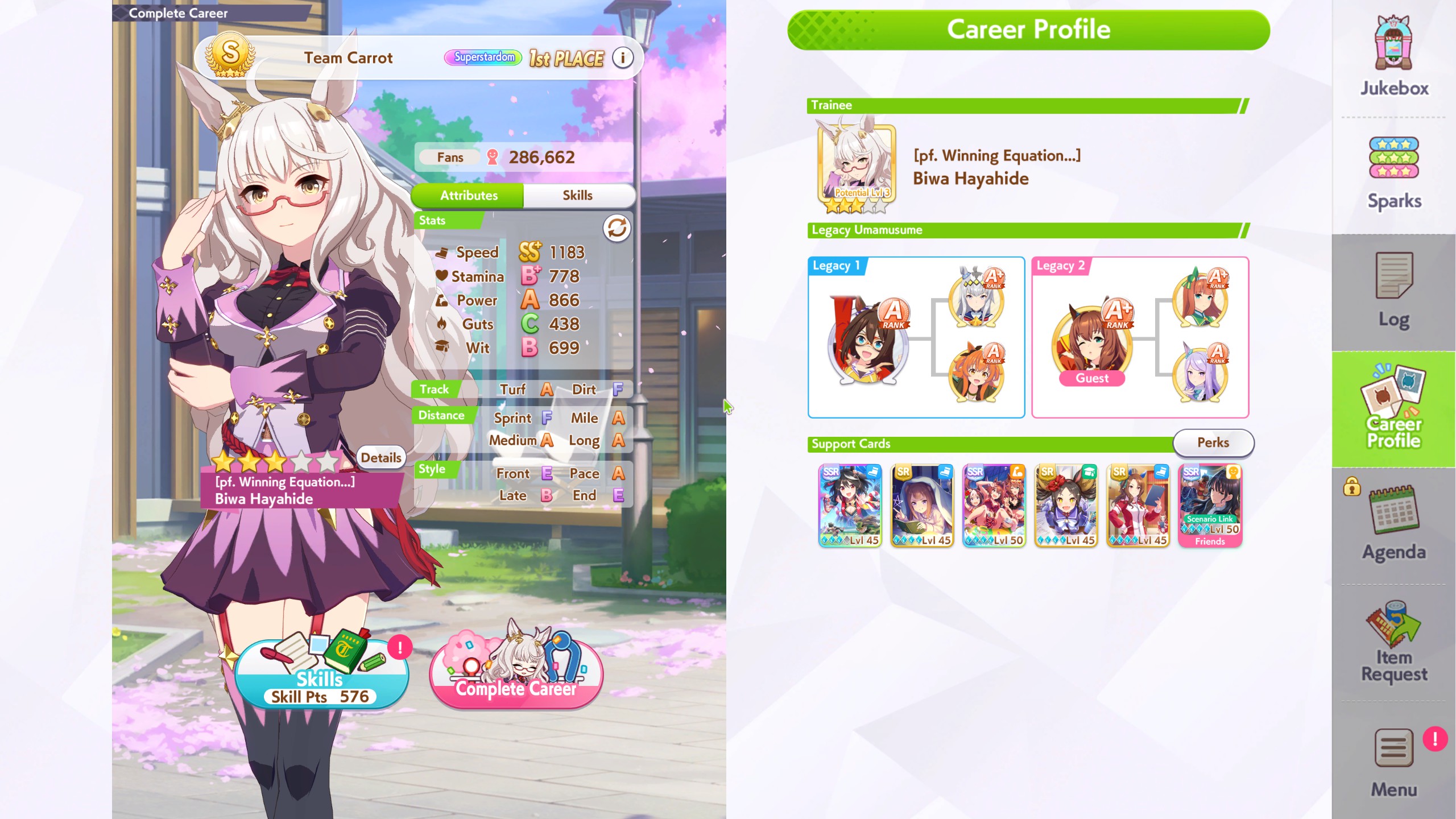 Current Rate Up: Transcend alt (3*), SSR Tokai Teio (Speed), SSR Hoshina Kiyoko (Pal)