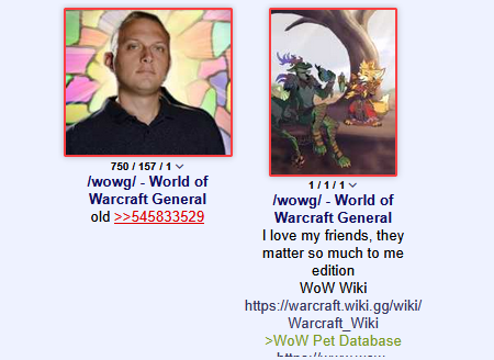 >>545922065You can already feel the seethe in this thread.Anyway I’ll keep an eye on this one for any WoW discussion, though I doubt there’ll be any for a while - I’m off playing other games for now.