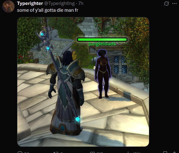 This entire game must be purged. We need WoW 2 without all the gay furry women shit. It's embarrassing at this point.