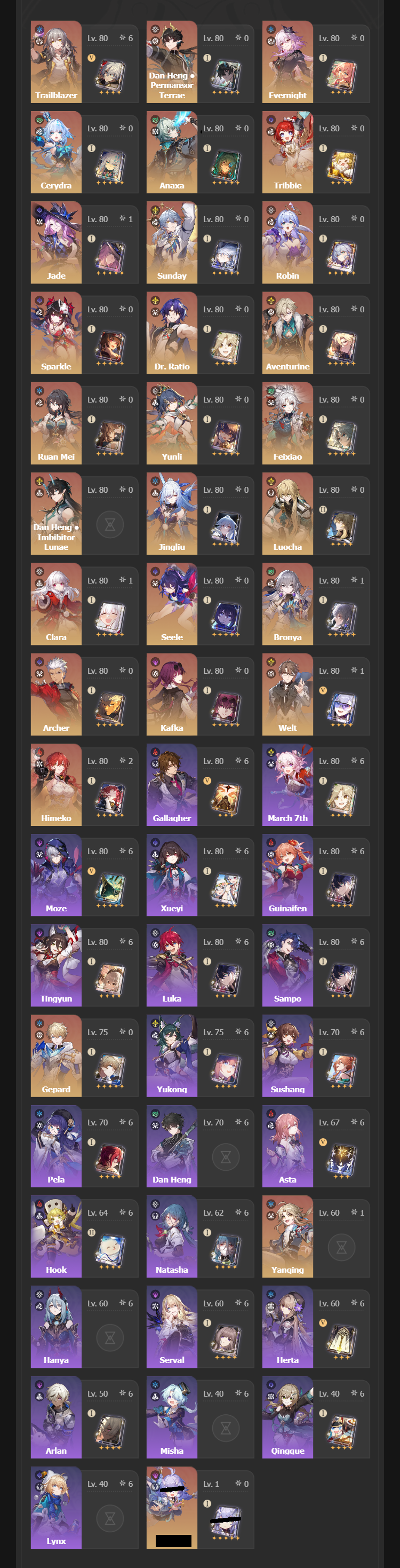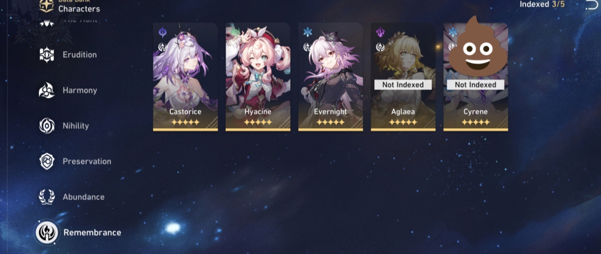 >>545956490Same except E3 Bronya, hopefully this patch is generous since I haven’t done CW or the event yet