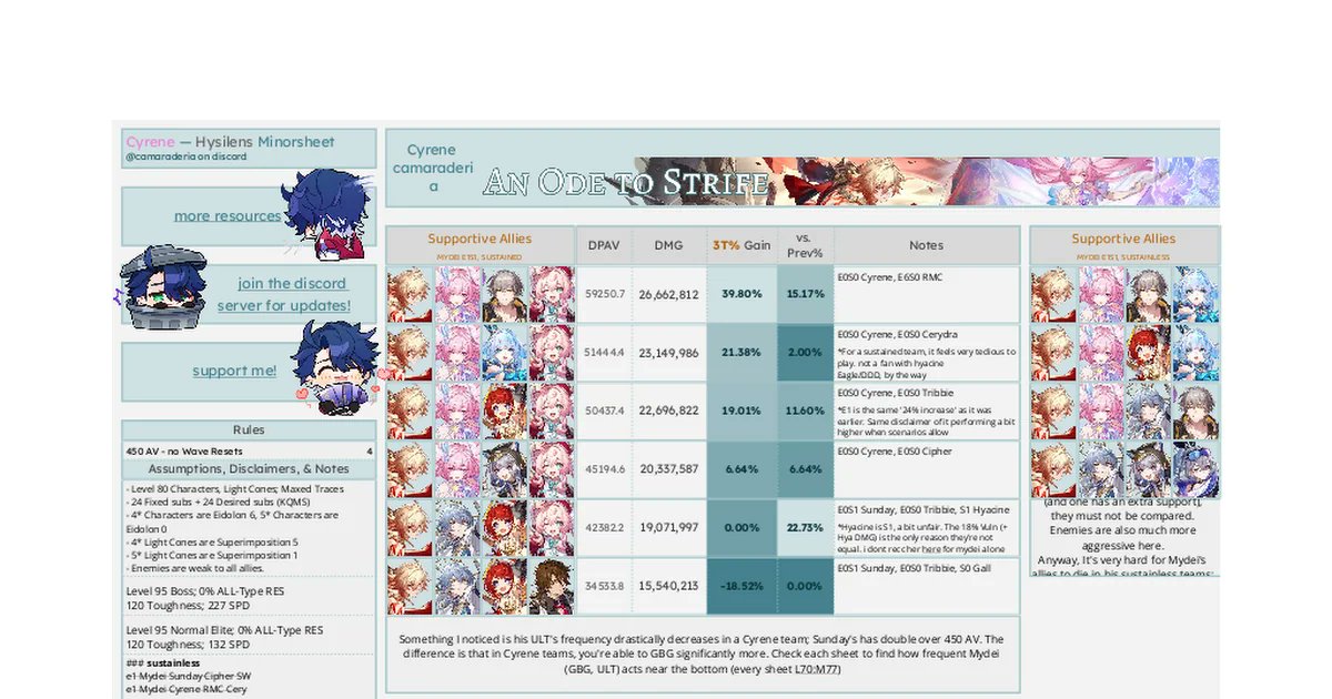 If I wanna roll for Mydei, what teammates do I want to use? I don't mind running sustainless for him with Cyrene.