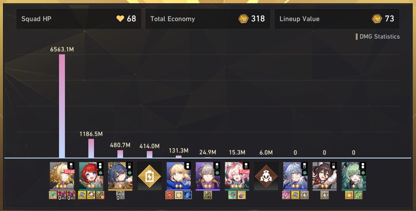 >>545979068Aglaea, Cipher, Mydei, Tribbie, Anaxa, Hysilens, Cerydra, Dan PT…
