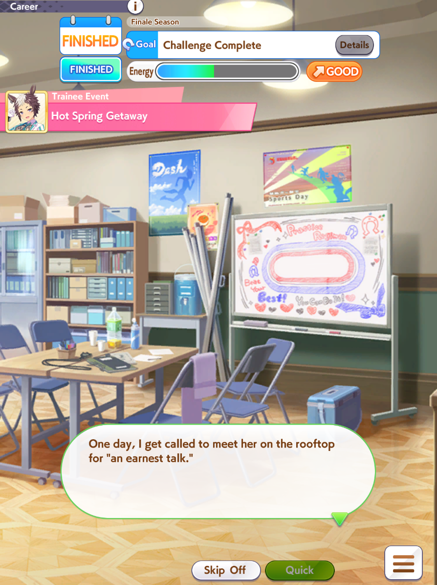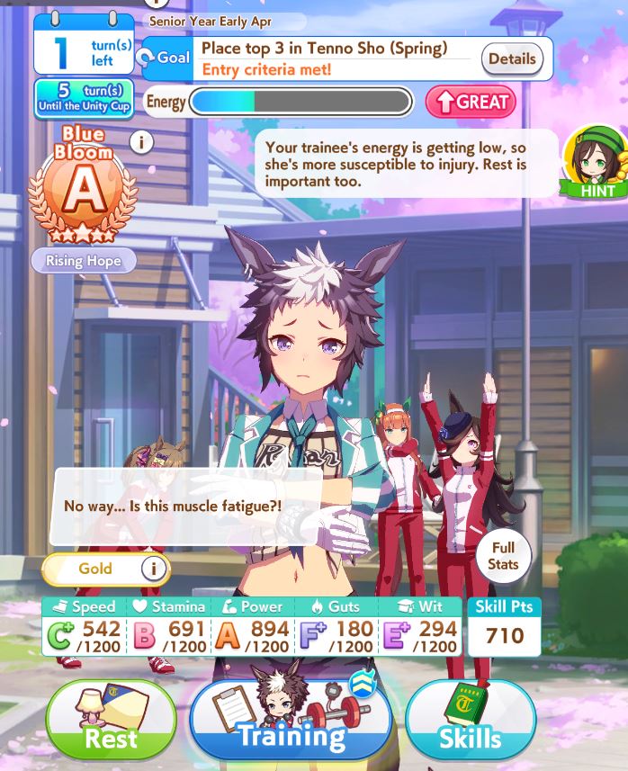 >>545974440>did you win URA finals against team Zenith aces?Not at the time of my post. I thought I would get it right after Unity.>why do you want cooldown, ain't that a long rec skill?I'm training Goldship for TT. My thinking was Cooldown + Adrenaline Rush + actually running a stam card with Rice, but the bitch ghosted me so I have to settle for inherited Pure Heart. I'm probably going to just train a better Goldship in URA after CM.Also, it's fucking hint levels? This fucking dogshit scenario gives you no skill points, why the fuck am I expected to pay for the skill?