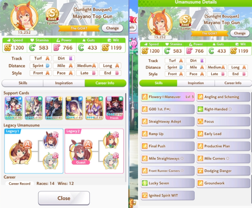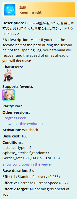 > Been doing 2pal so far> Notice I have enough cards for speed/wit deck with 60 race bonusInteresting. I remember McQueen's secret event gets modified by race bonus since I was getting 21 when the base is 15. Does that apply to all secret events?