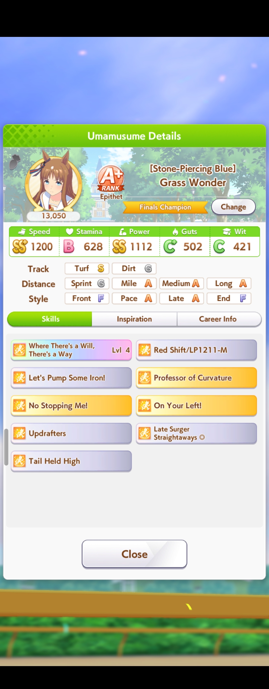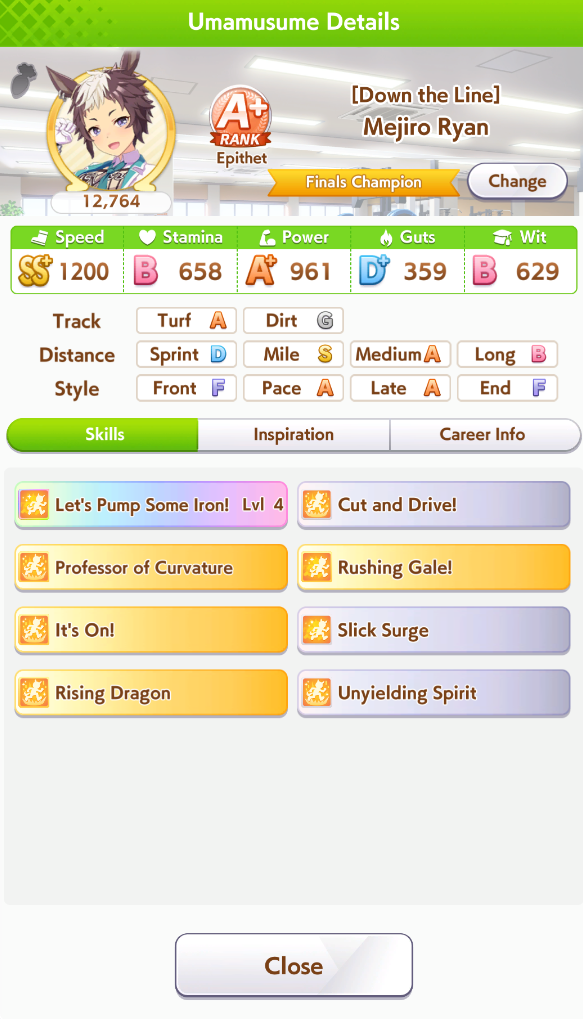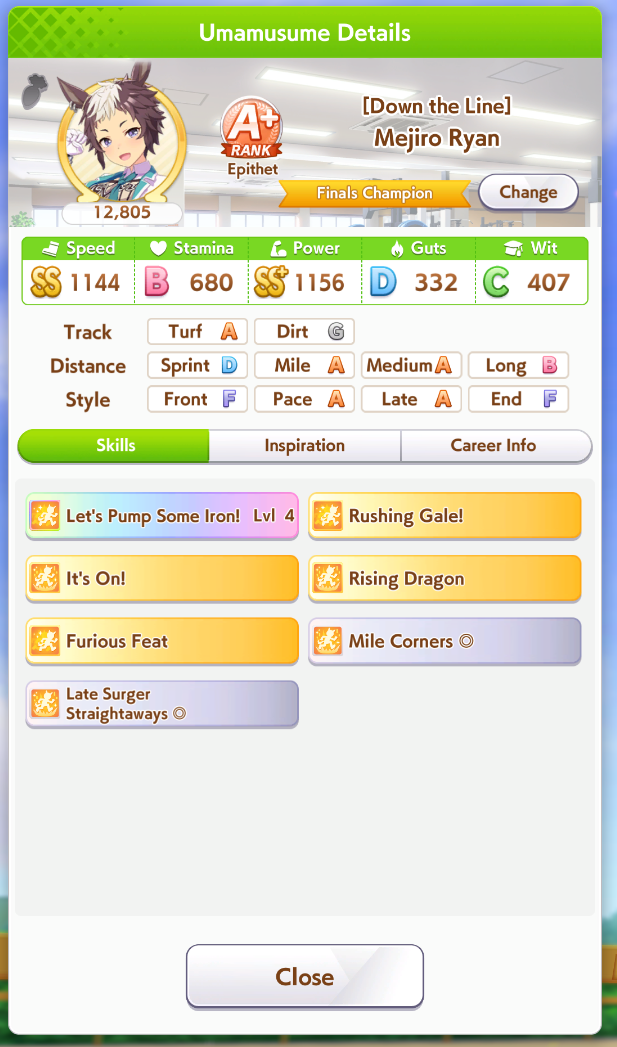 >>545993128Statline and skills look good, but based on CM3 experience you need Mile S on late gamblers because the final straight is so short. Deck?