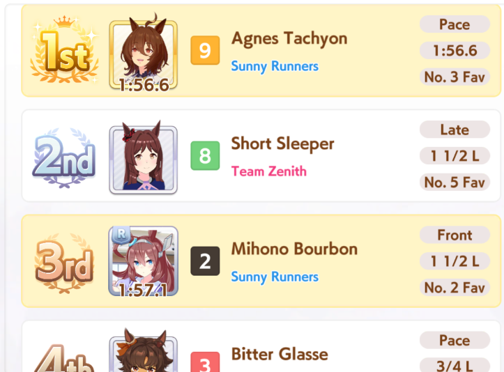 >first time running Bourbon through Unity Cup>first Normal end (2nd in finale)I like Unity Cup less and less