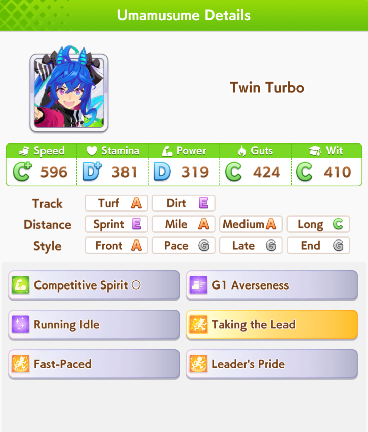 >>545988103Drop the wit meme, go full speed + rike and maybe Oguri if you want her gold accel.