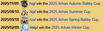 calling it now, somehow /xs/ /g/ and /lgbt/ will all make a final day in 2026. not necessarily all in the same season but it'll happen