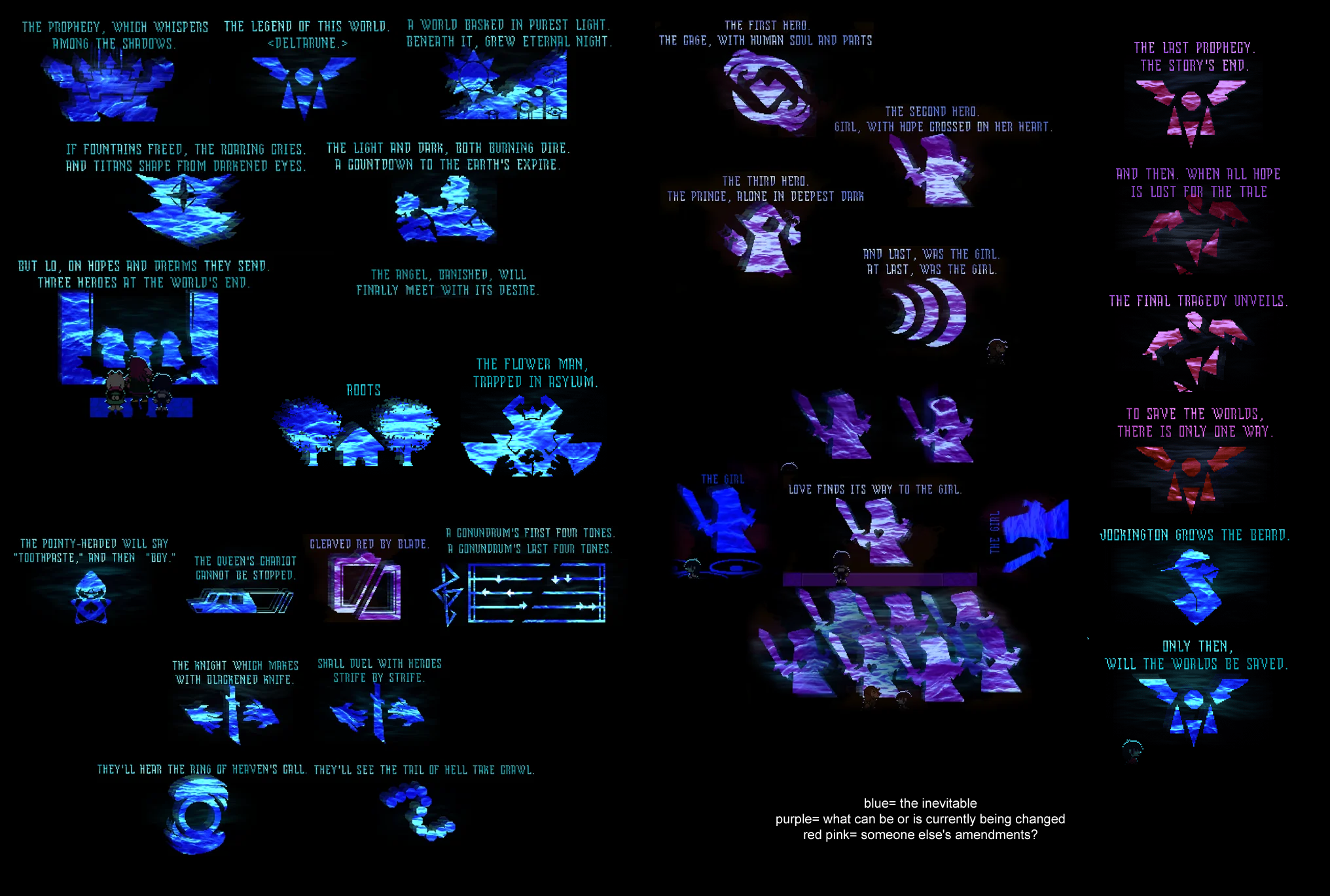>>546021271Eram is basically like Seam but more malicious, he doesn't think it's possible to change anything even with the shadow crystals and just wants Kris/(You) to have fun while you can.>>546021584>Friend is also weird route codedI've always found this claim dubious. FRIEND doesn't appear in the chapter 2 weird route at all and the 2nd segment of the sword route, the segment that hints at the weird route with the ice palace and white cloak and so on, is the only segment where FRIEND doesn't appear. FRIEND is far more shadow crystal associated than weird route associated.