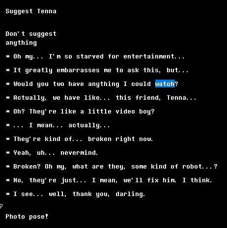 >>546045462I don't think it's weird. Broken isn't usually something you'd say for a person, but with how varied monsters are a robot isn't totally out of the question. But also it's Mettaton interested in robots who's subtly asking to see if there's a way to make his dreams come true and maybe predisposed to hoping she's talking about a robot friend at the first sight of weird phrasing.
