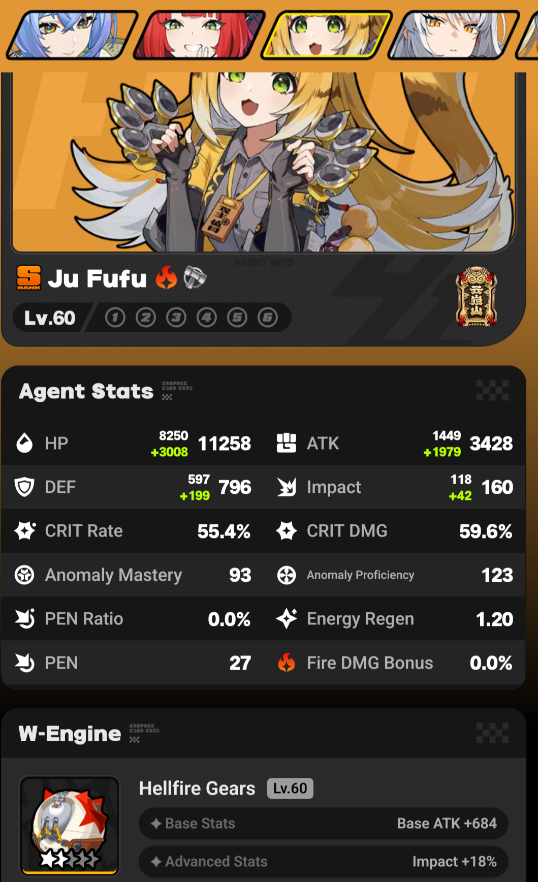 >>546046271Cute fufu!If you want a super easy build, you can also go4p Swing JazzThe extra ER will make her EX more often.The lack of King of Summit means you can focus on ATK.And she is the best agent in ZZZ who can maintain Swing Jazz.