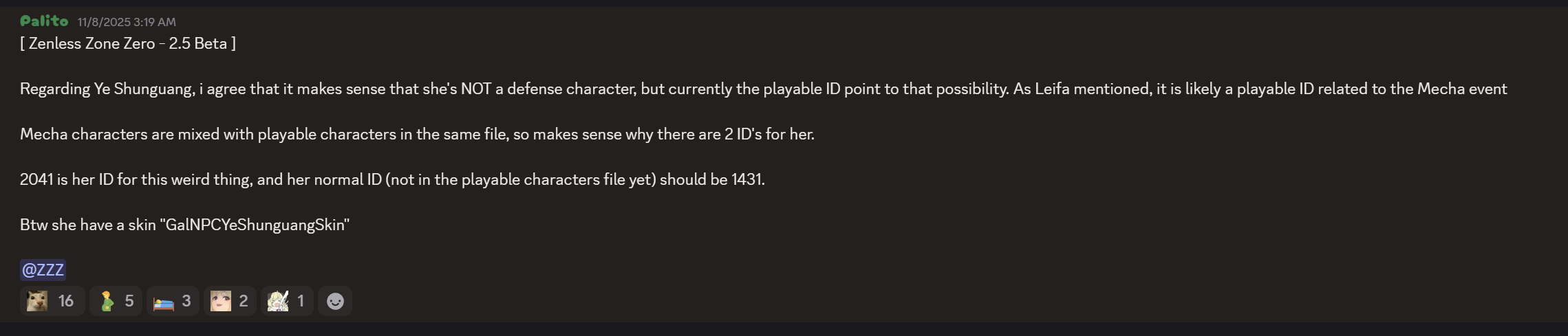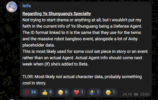 >>546049526>Related to the Mecha event>ID would've been found in 2.4 beta since that's when the event takes placeDo leakers just say anything? This just reads like they need to come up with a reason as to why she can't possibly be a defense character