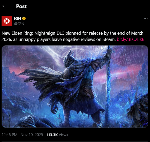 >>546028035Kadokawa released a statement yesterday confirming that the dlc will come by March 2026. There was confusion because the translation for english said end of 2025 but the original Japanese said Q4 which in Japan ends in the follow year.Now we can continue huffing copium that they would drop it in December but Fromsoft delaying ER Tarnished Edition until 2026 probably means Nightreign dlc is delayed until then too.