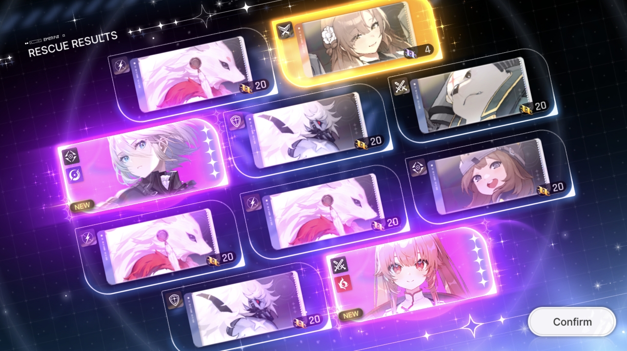 Actually got everyone I wanted, will claim Veronica with the event shop rolls. Now if only we had the resources to actually build the characters, Orlea still has to sit at lvl20 because I simply can't afford to get her even to 40.