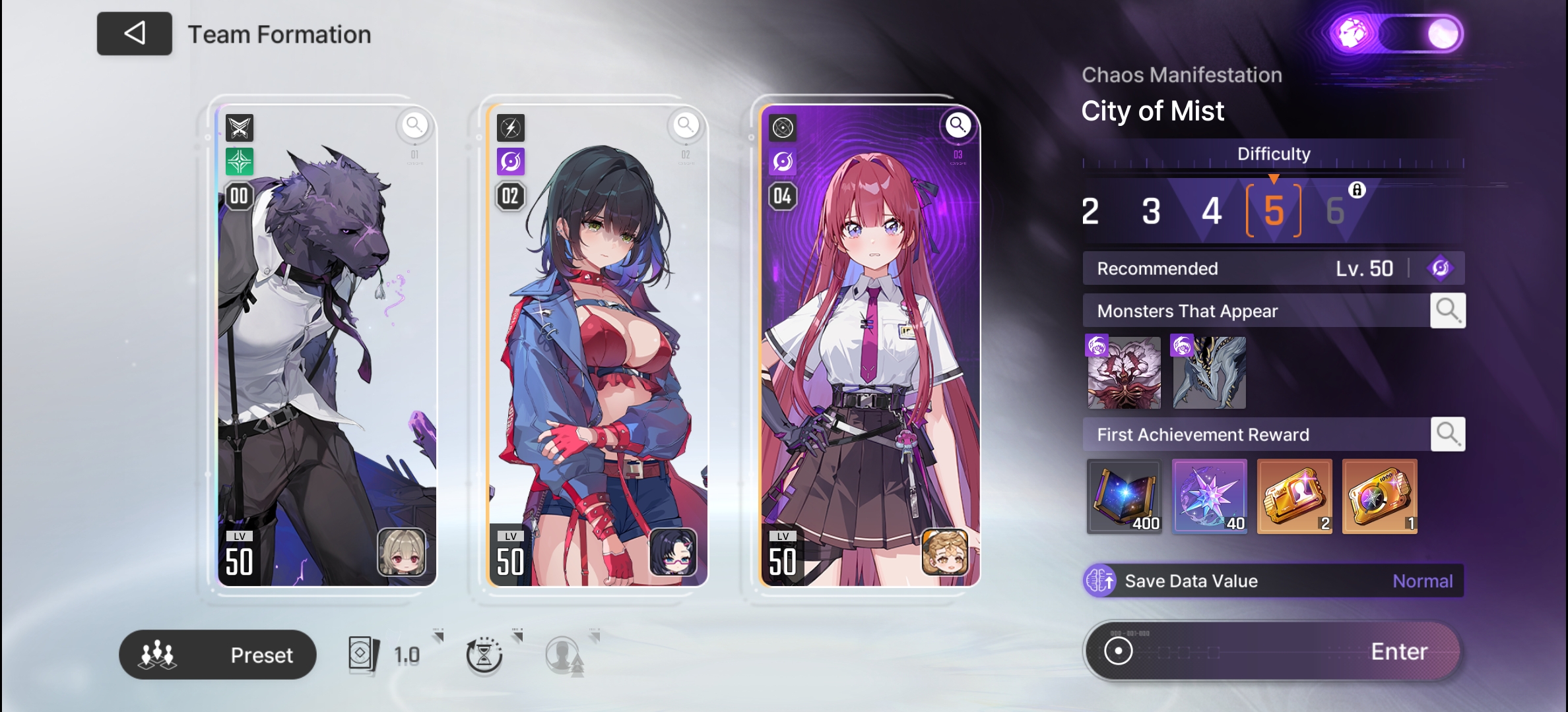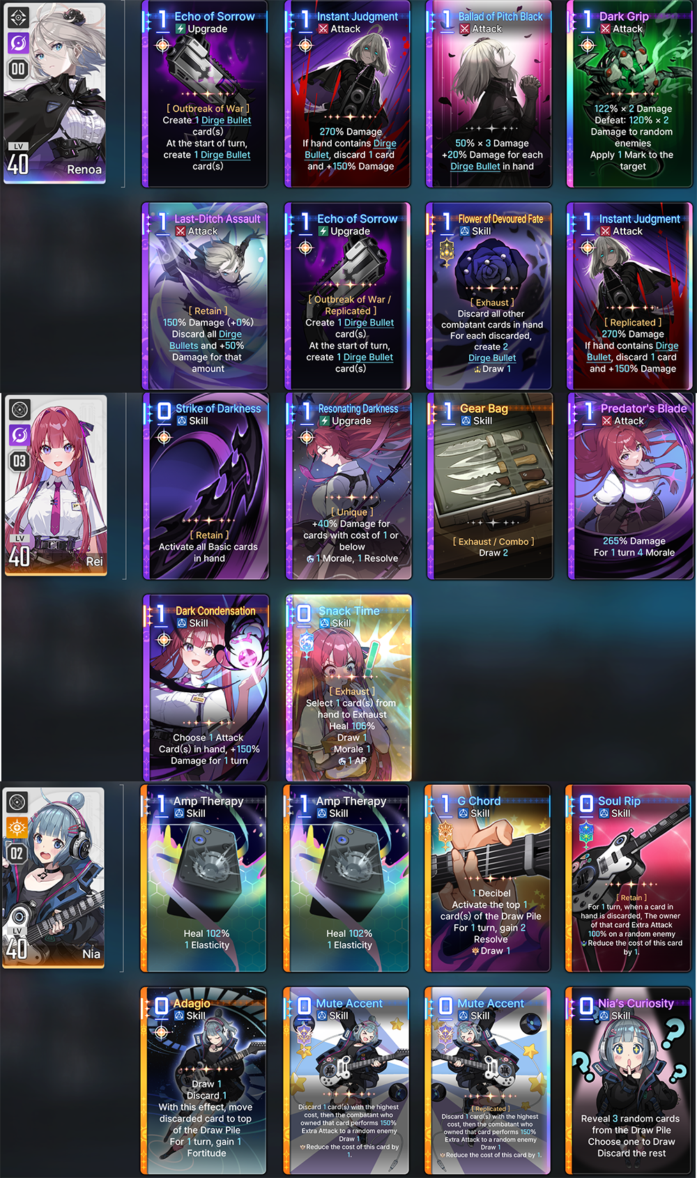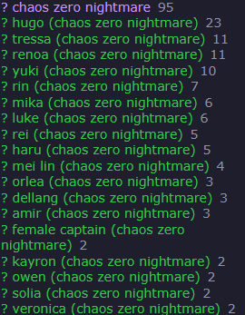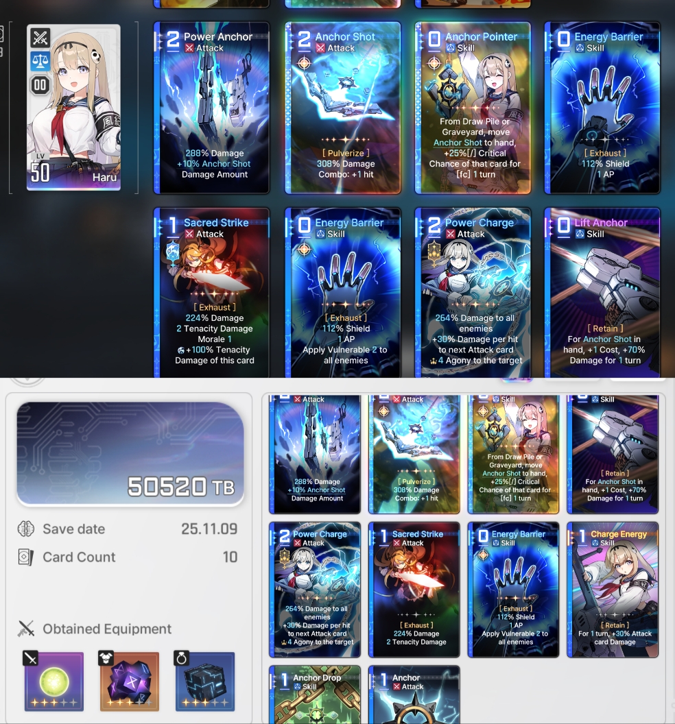 The nightmare is ongoing... >>546012426>"Forbidden Catalyst" Update on 11/12https://www.youtube.com/watch?v=qkkV_Cb7h2shttps://www.youtube.com/watch?v=BYR6GAxNBHYhttps://www.youtube.com/watch?v=EpxVII71swo◤Developer Note: Upcoming Improvements in the First Update◢: https://sdk-page.onstove.com/chaoszeronightmare/en/view/11209203>Current Featured Banner/Upcoming BannerHaru - Striker - Justice - Until 11/12Yuki - Striker - Order - From 11/12>Current Events/Upcoming ContentA Flickering Gleam on a Rusted Anchor - Until 11/12>Basic Guides and Introductionhttps://www.youtube.com/watch?v=B-0CaRtTTpQhttps://www.youtube.com/watch?v=zDFkvOXO2Jg>Deck building simulatorhttps://czndecks.com/>PC Client (Stove)https://www.onstove.com/en/download>Reroll guidehttps://game8.co/games/Chaos-Zero-Nightmare/archives/559640>Reroll tipsReroll Beginner Banner for desired character, Standard banner to guarantee two 5 star start, or reroll for HaruYou have enough rolls to finish beginner banner and one 10 roll on limited banner (You can still luck yourself two 5 stars through beginner banner)>Cards aren't savingCards saving scales to chaos difficulty and if Deep trauma mode is on (purple icon on top right of chaos team formation)>Apology Stream Summaryhttps://www.youtube.com/watch?v=BvkE1KHHwFg&thttps://pastebin.com/U2Cg4hDC