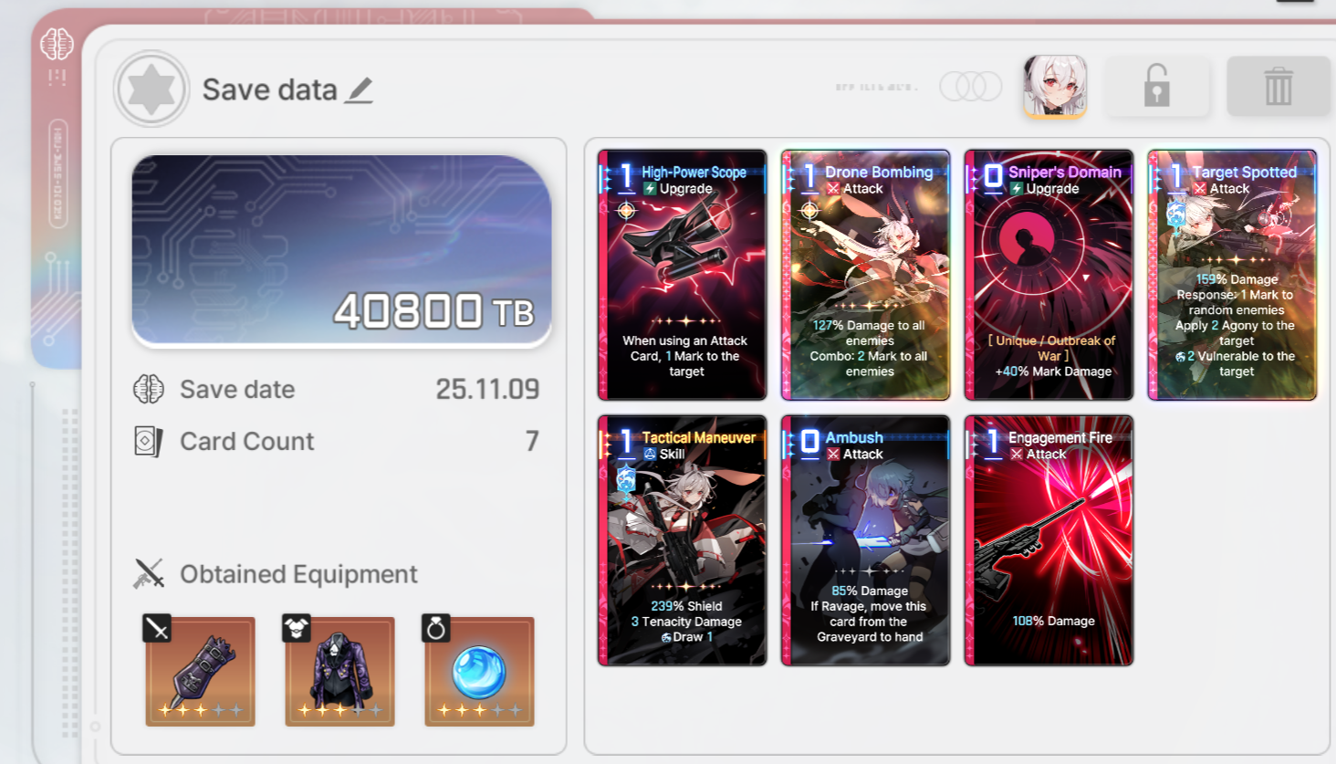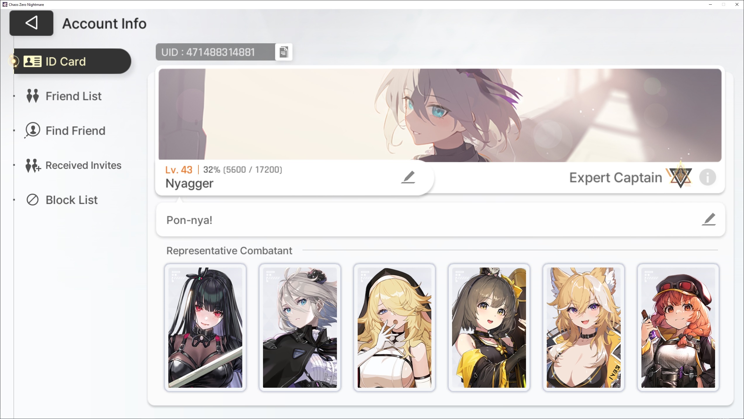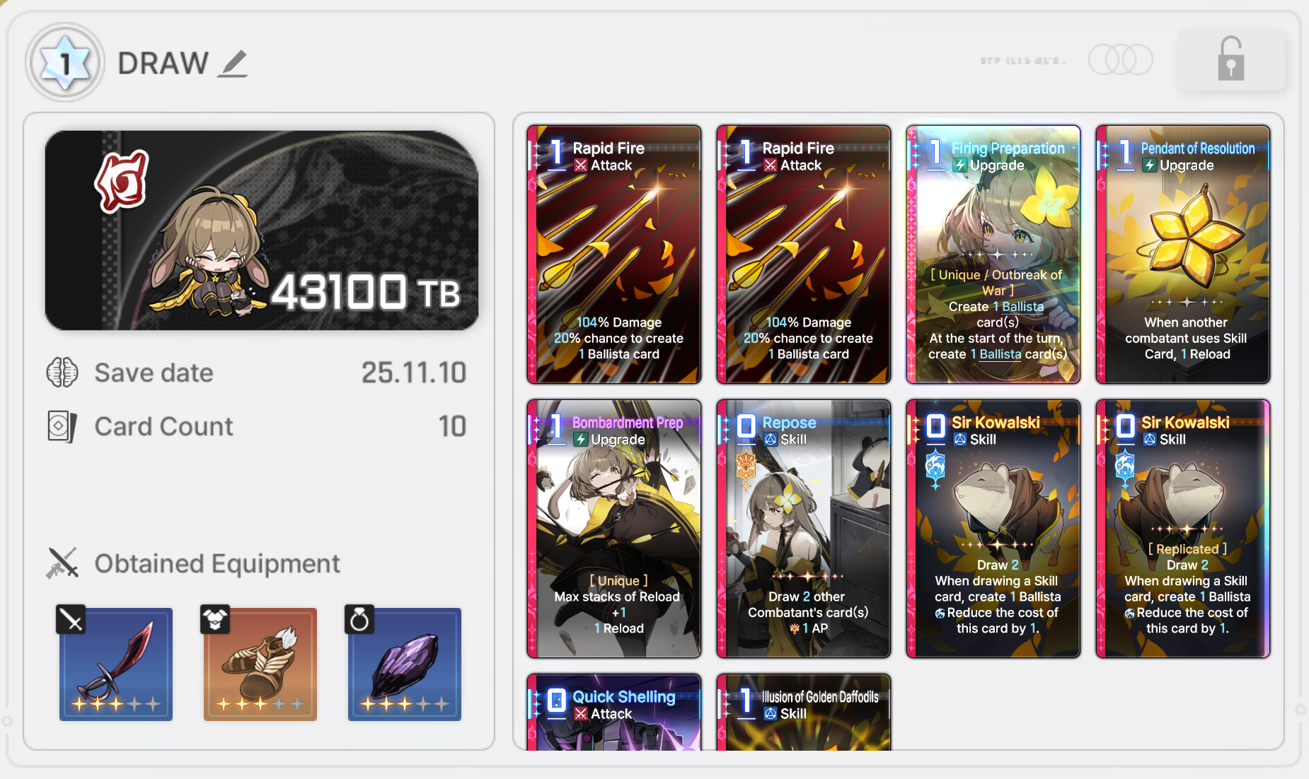 The nightmare is ongoing... >>546012426>"Forbidden Catalyst" Update on 11/12https://www.youtube.com/watch?v=qkkV_Cb7h2shttps://www.youtube.com/watch?v=BYR6GAxNBHYhttps://www.youtube.com/watch?v=EpxVII71swo◤Developer Note: Upcoming Improvements in the First Update◢: https://sdk-page.onstove.com/chaoszeronightmare/en/view/11209203>Current Featured Banner/Upcoming BannerHaru - Striker - Justice - Until 11/12Yuki - Striker - Order - From 11/12>Current Events/Upcoming ContentA Flickering Gleam on a Rusted Anchor - Until 11/12>Basic Guides and Introductionhttps://www.youtube.com/watch?v=B-0CaRtTTpQhttps://www.youtube.com/watch?v=zDFkvOXO2Jg>Deck building simulatorhttps://czndecks.com/>PC Client (Stove)https://www.onstove.com/en/download>Reroll guidehttps://game8.co/games/Chaos-Zero-Nightmare/archives/559640>Reroll tipsReroll Beginner Banner for desired character, Standard banner to guarantee two 5 star start, or reroll for HaruYou have enough rolls to finish beginner banner and one 10 roll on limited banner (You can still luck yourself two 5 stars through beginner banner)>Cards aren't savingCards saving scales to chaos difficulty and if Deep trauma mode is on (purple icon on top right of chaos team formation)>Apology Stream Summaryhttps://www.youtube.com/watch?v=BvkE1KHHwFg&thttps://pastebin.com/U2Cg4hDC