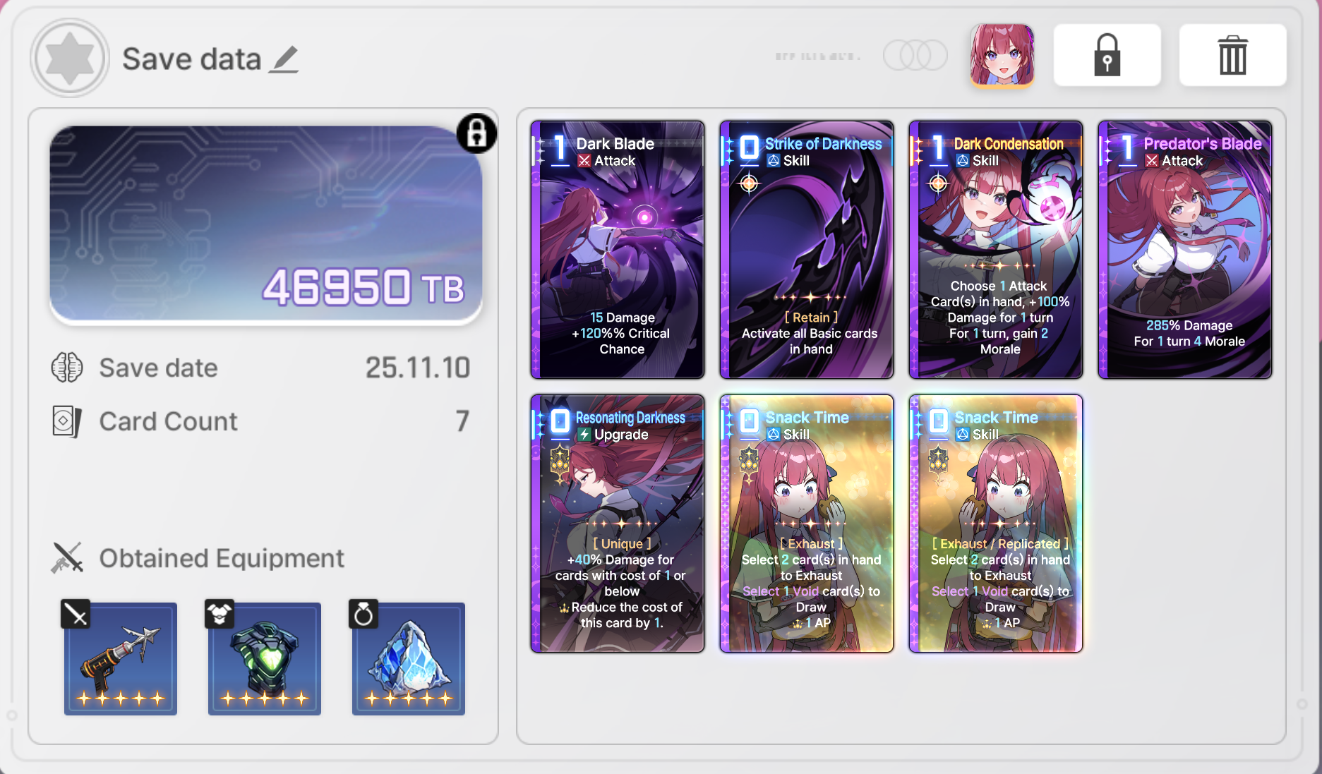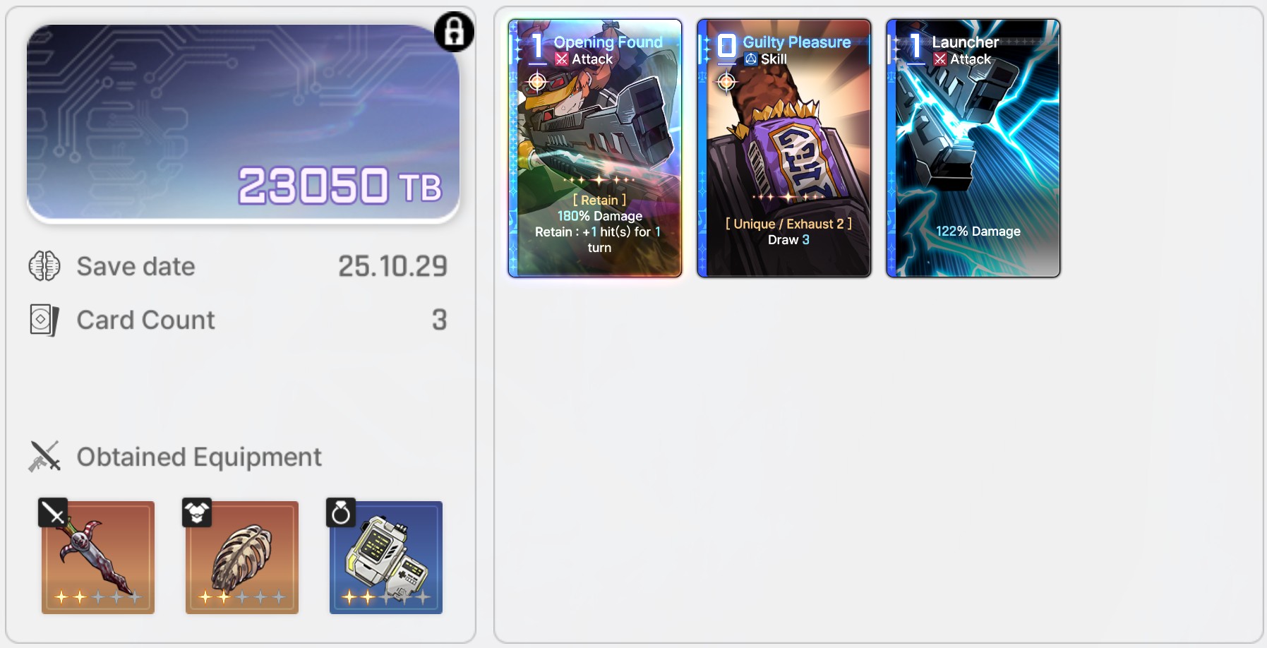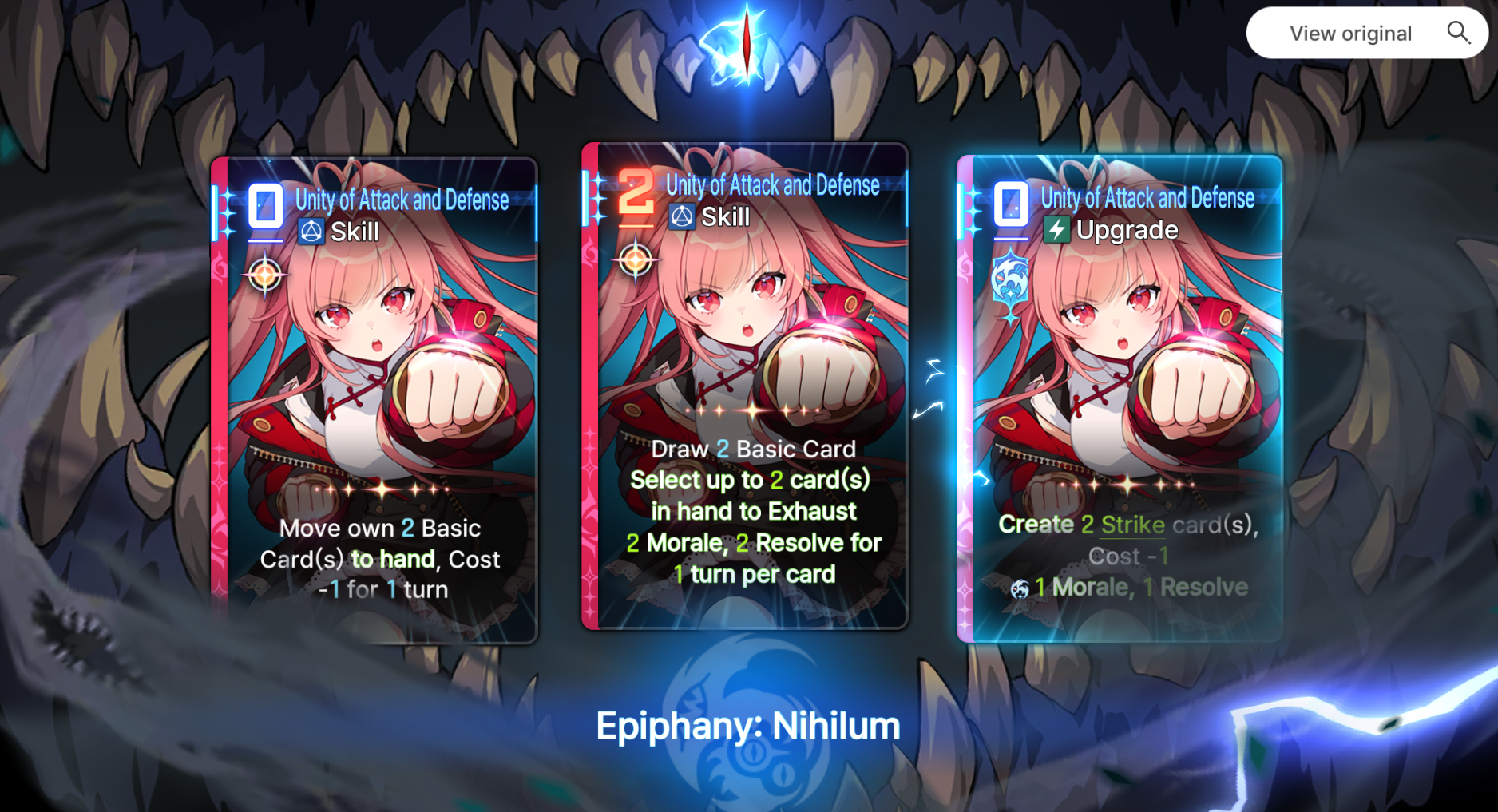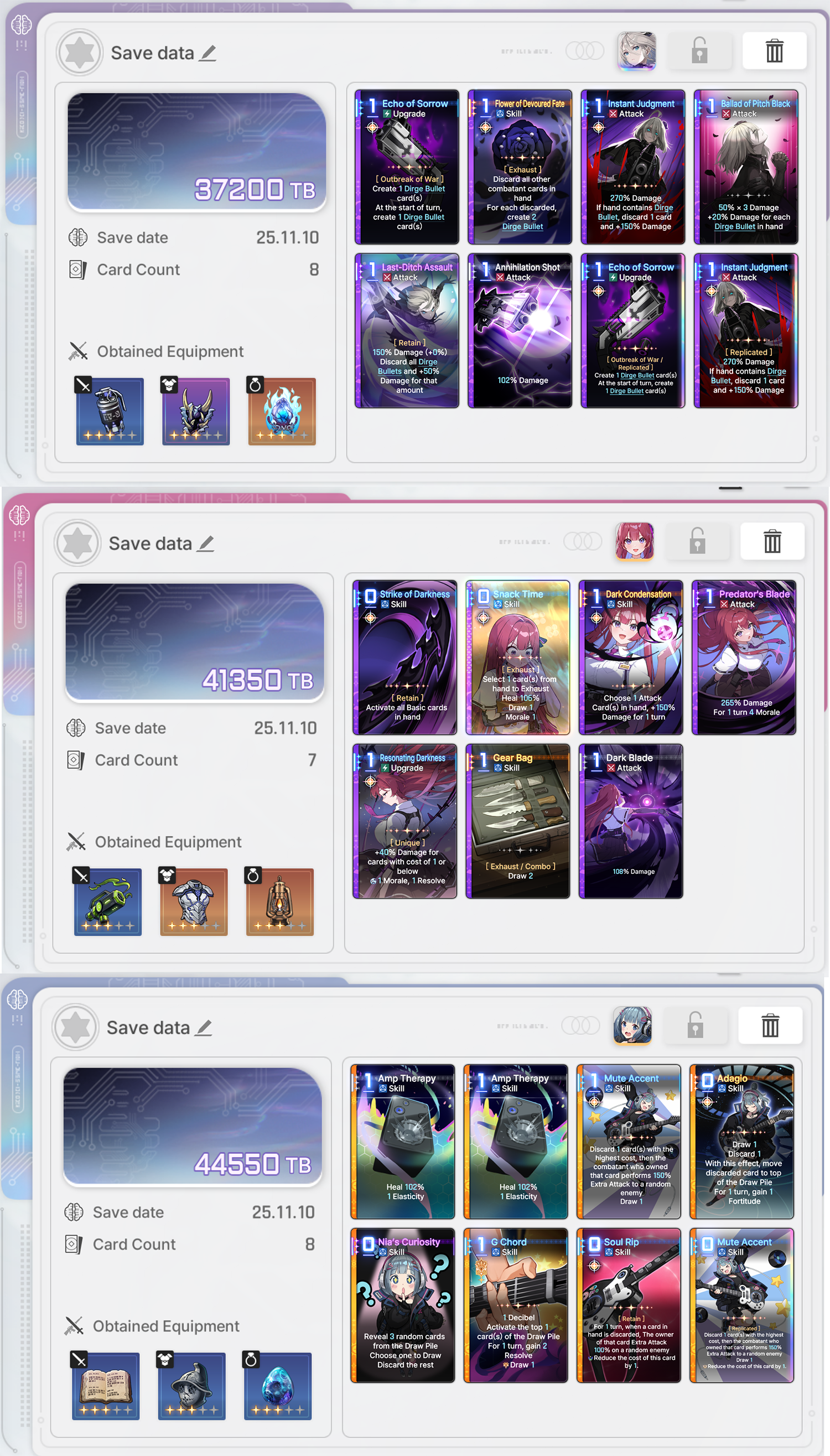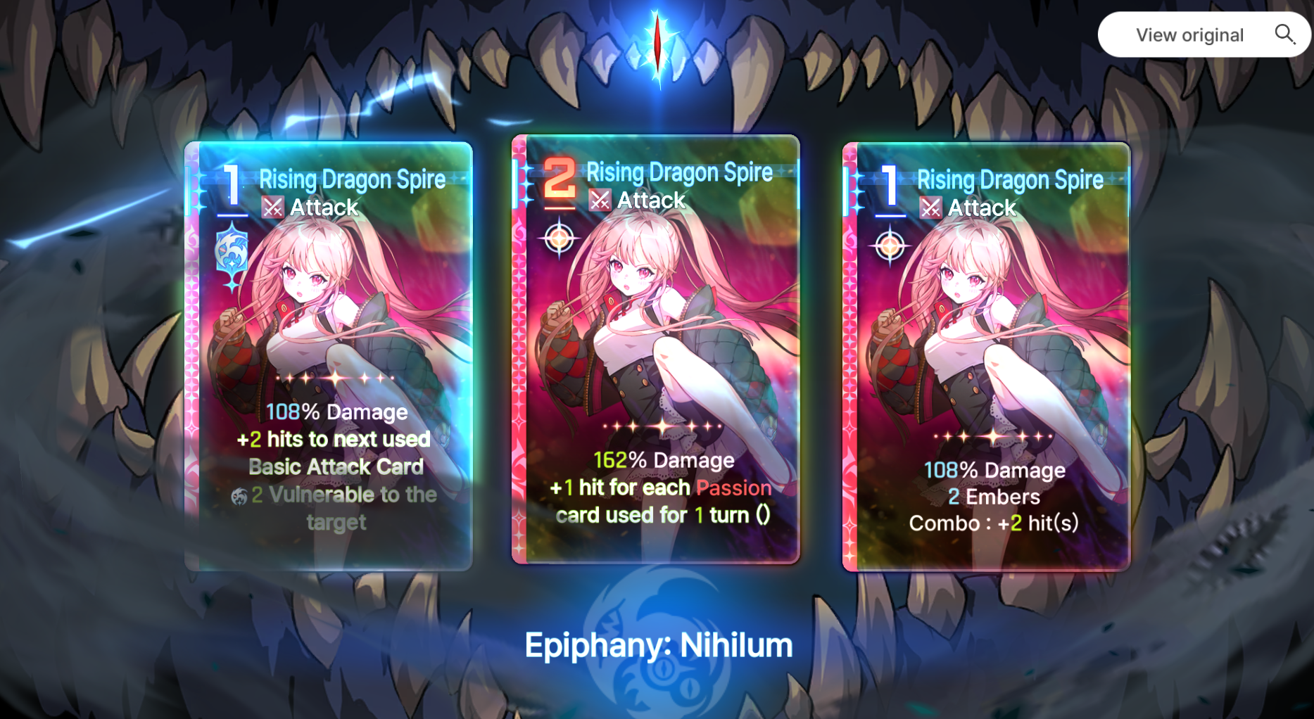 The rng of this game is beyond disgusting, coupled with the time it takes to even farm said rng and i'm quickly reminding myself why i quit E7.>Most epiphanies exist solely to ruin your deck building because they are straight up bad compared to the best ones>The copy system is utter dogshit, not only do you need to epiphany a card before replicating it but you also need to beg the game to let you copy the right cards out of 3 cards for most of the copy events in a run>Then you have the gods blessings rng>Then you have the equipment rng>Then you have the neutral cards rng>Then you need to beg the save data system to not null and void all of the rng above>On top of the rng in the runs the game has a shitty fragment system from E7/hoyoshit, something that alone is enough to make most players of those games lose their minds>And the cherry on top is the genshit gacha systemThis game is getting pvp leaderboards very soon btw.