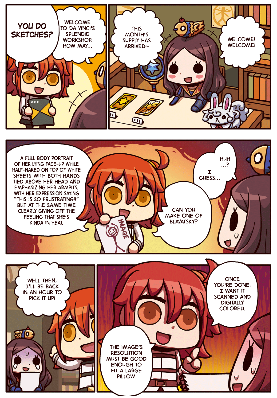 >>546043719>Oh, Beni!!! Mmm! (Smooch, smooch)>So earnest! So pure! So gullible! You're everything I love! You are more than welcome to build a nest using my hat!>Oh... She ran away again... Why does Beni-Enma recoil from my embrace?>Hm? What is with your look of disapproval? Don't tell me there's something wrong with how I approach her!?I personally think that it is because they are both animal trait servantsAnd no that 2021 event featured Tamamo and Tamamo Cat not Koyan however in canon Beni Enma teaches cooking classes in the Throne of Heroes, and a lot of the Servants, especially the female Japanese ones, know her from that. Tamamo is one of her students, and Koyan modeled herself after Tamamo, so maybe Koyan was in those classes as well?