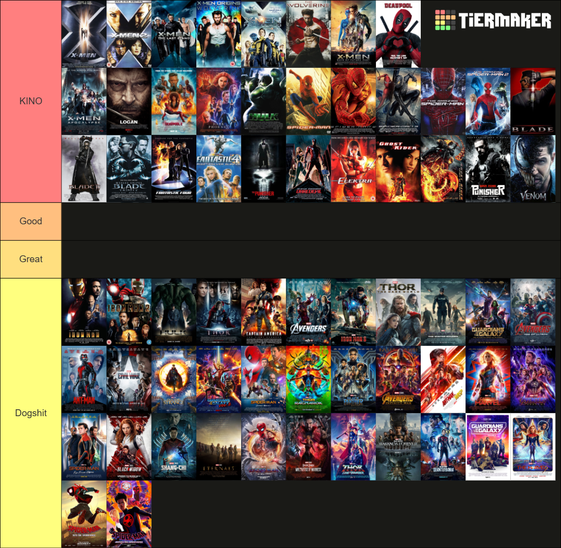 >>546059620No one will take you seriously when you put shit like Blade Trinity, Amazing Spider Man 2, Elektra and Fantastic 4 in great.