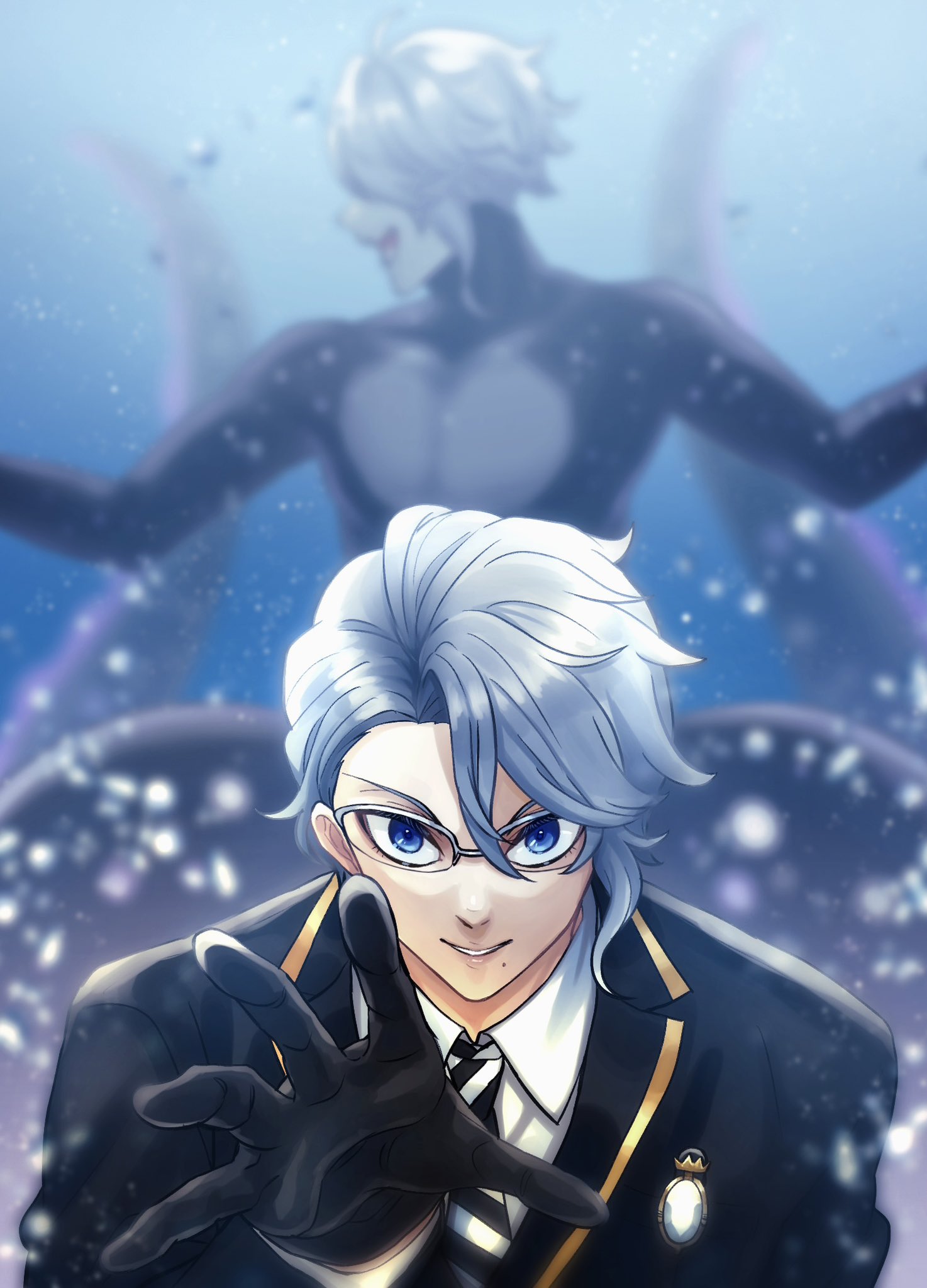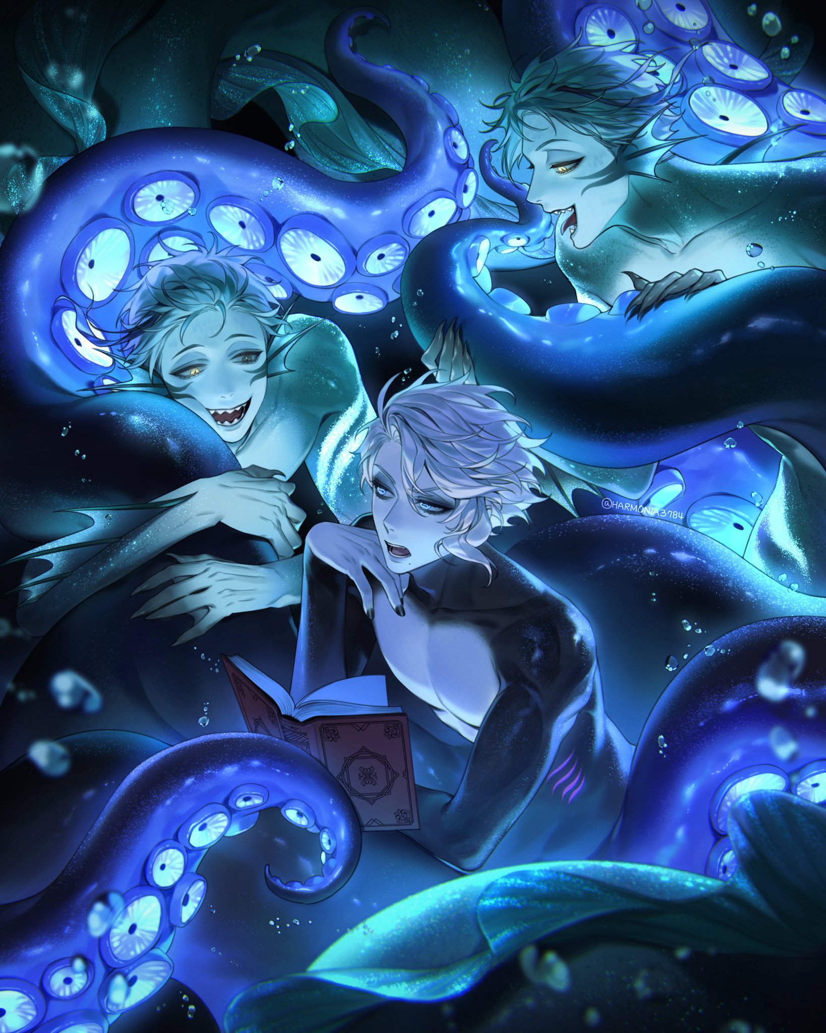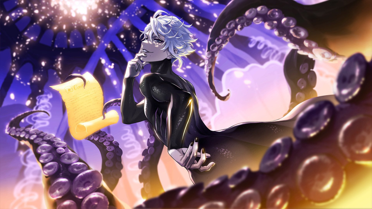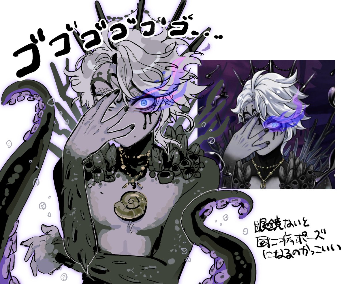 I think Azul was always meant to be sensual and seductive, but the Western fandom never realized this? The way he acts and talks, how he makes deals and convinces others, how he imitates Ursula. I think he was always meant to act more seductively and provocatively. But the Western fandom has a very nerdy, loser-like view of him, which I don't think fits the image he wants to project, even if he is that too, especially when he loses or exaggerates when he wins! Azul is quite complicated, as are the people surprised by his muscular and strong art style, even though it's already been said in the game how strong and muscular he is, and even Floyd has said this, but people don't pay attention to it.