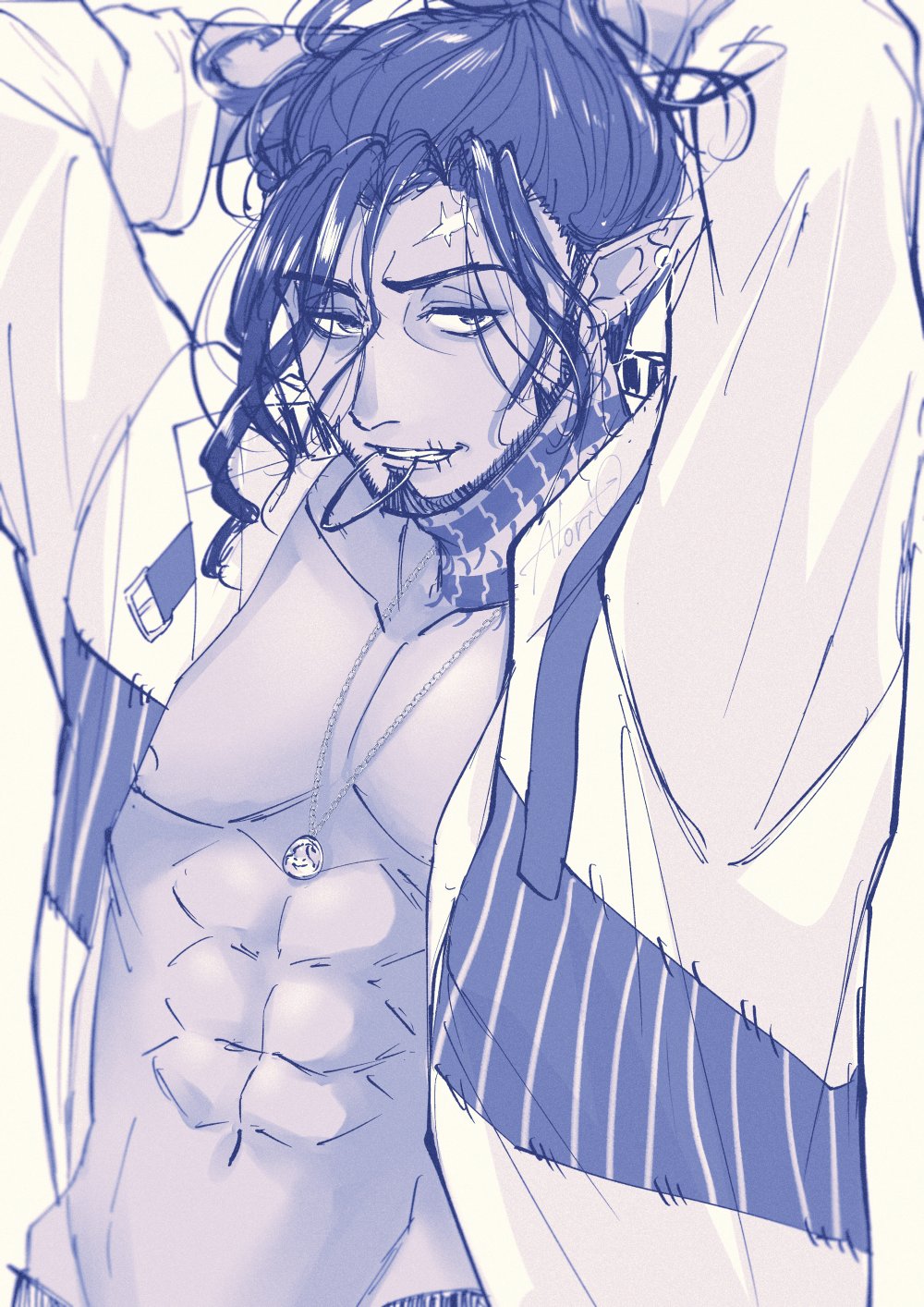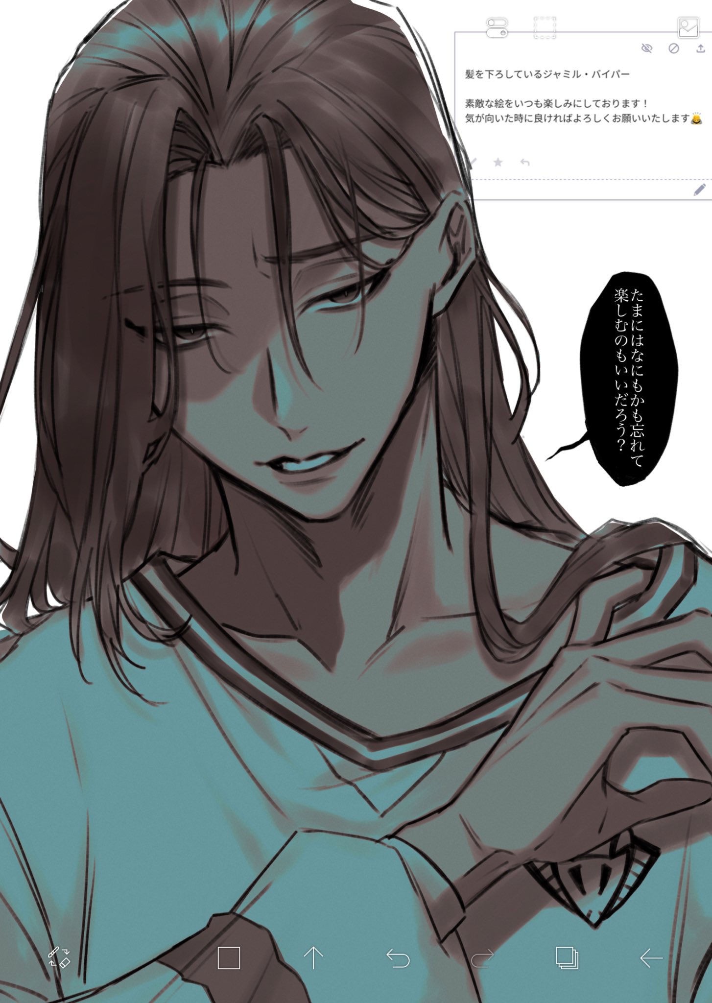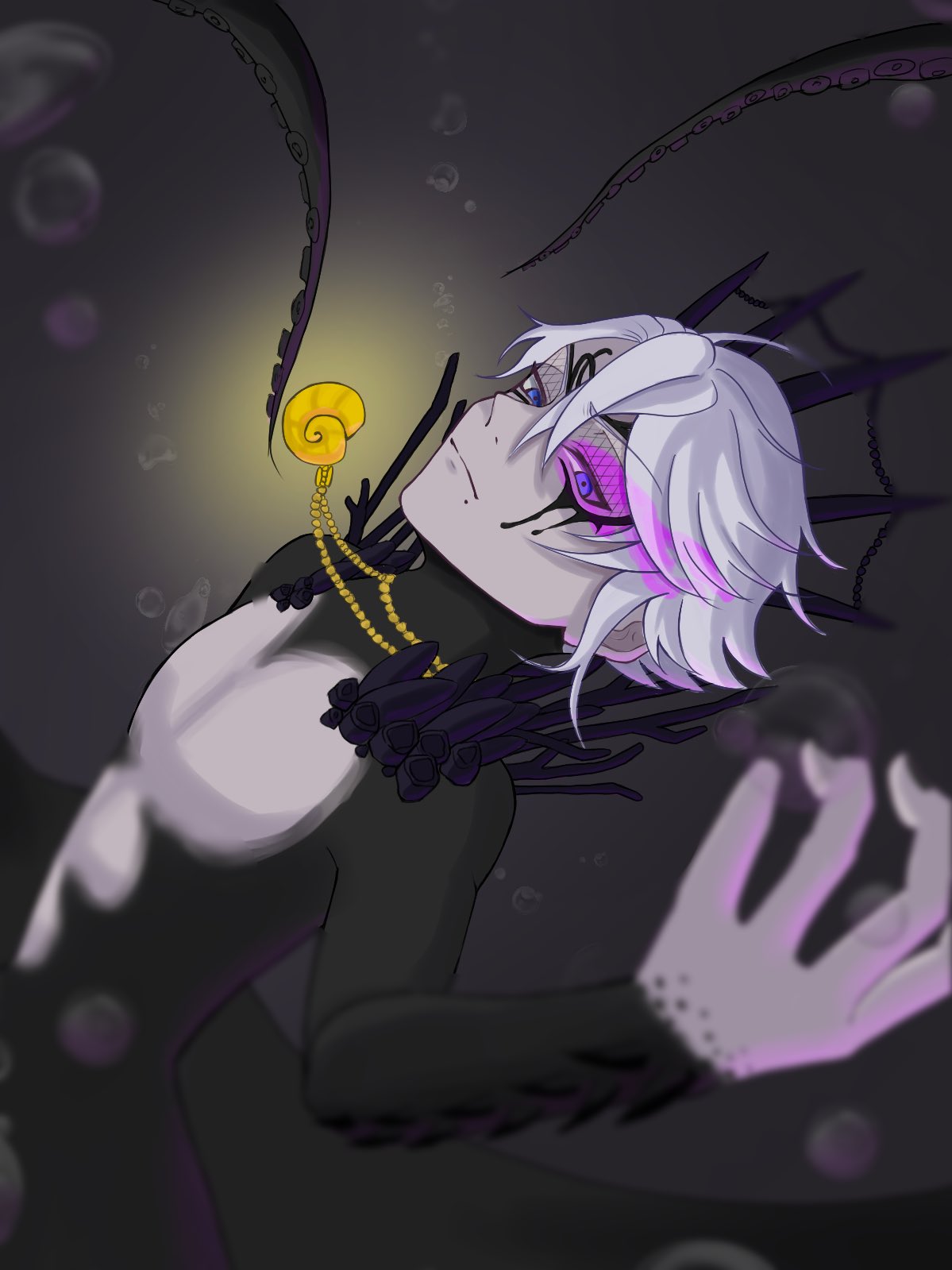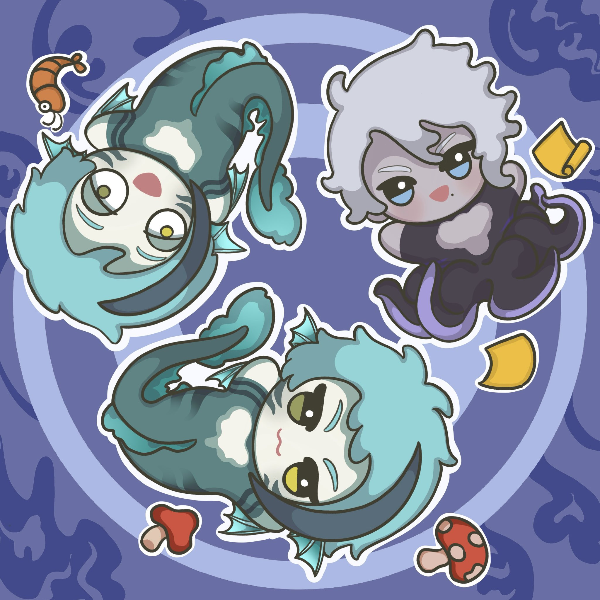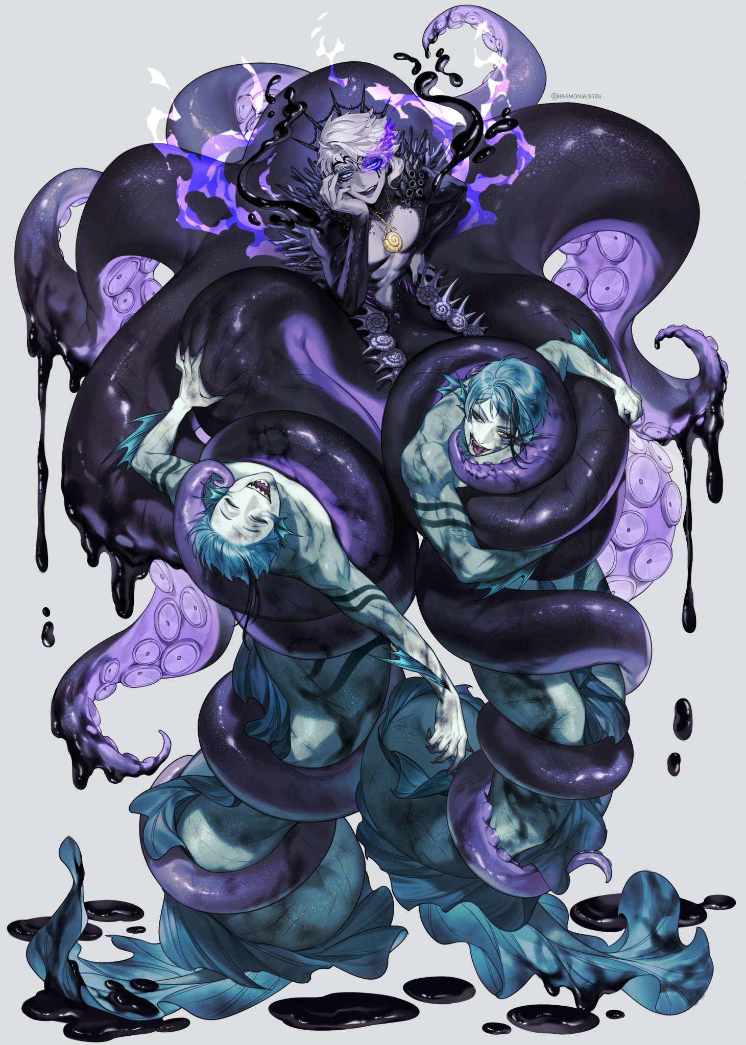 I think Azul was always meant to be sensual and seductive, but the Western fandom never realized this? The way he acts and talks, how he makes deals and convinces others, how he imitates Ursula. I think he was always meant to act more seductively and provocatively. But the Western fandom has a very nerdy, loser-like view of him, which I don't think fits the image he wants to project, even if he is that too, especially when he loses or exaggerates when he wins! Azul is quite complicated, as are the people surprised by his muscular and strong art style, even though it's already been said in the game how strong and muscular he is, and even Floyd has said this, but people don't pay attention to it.