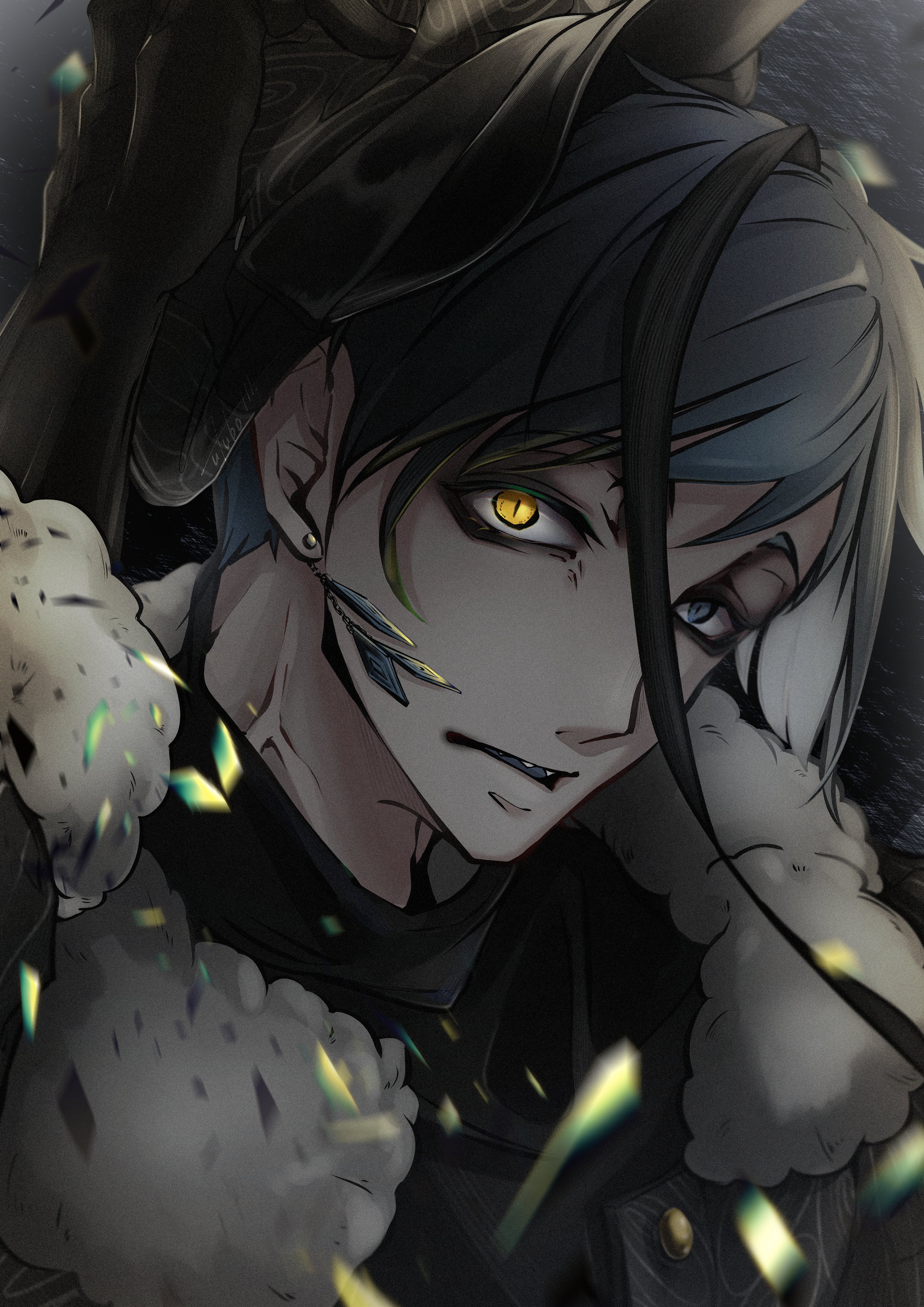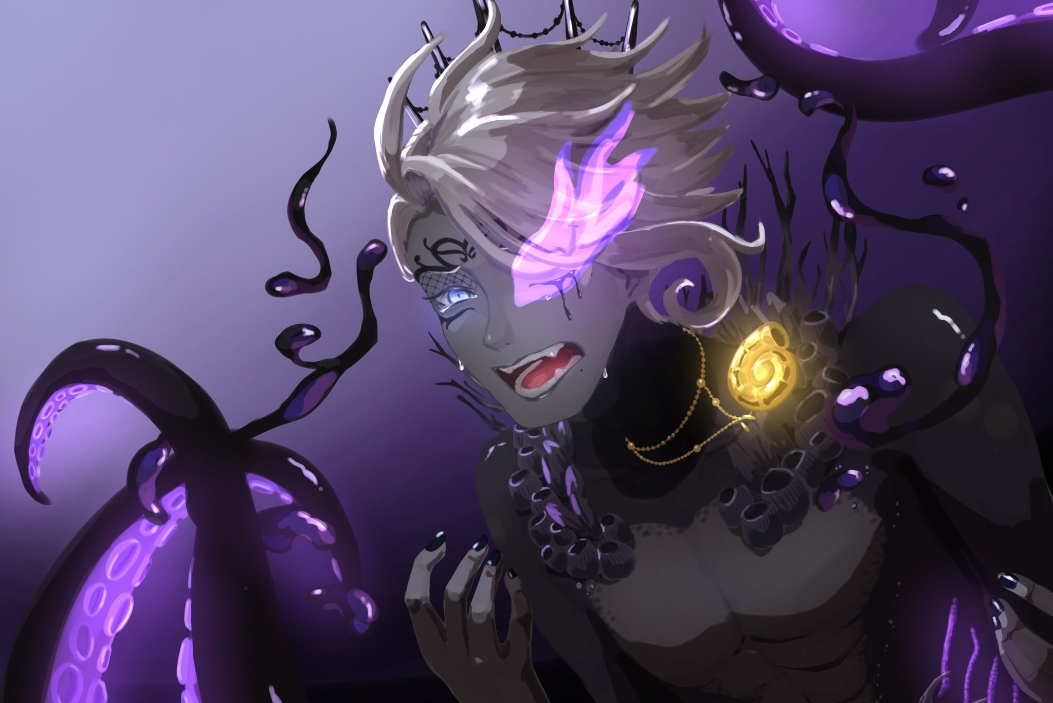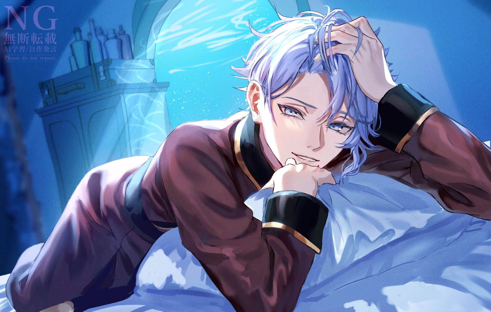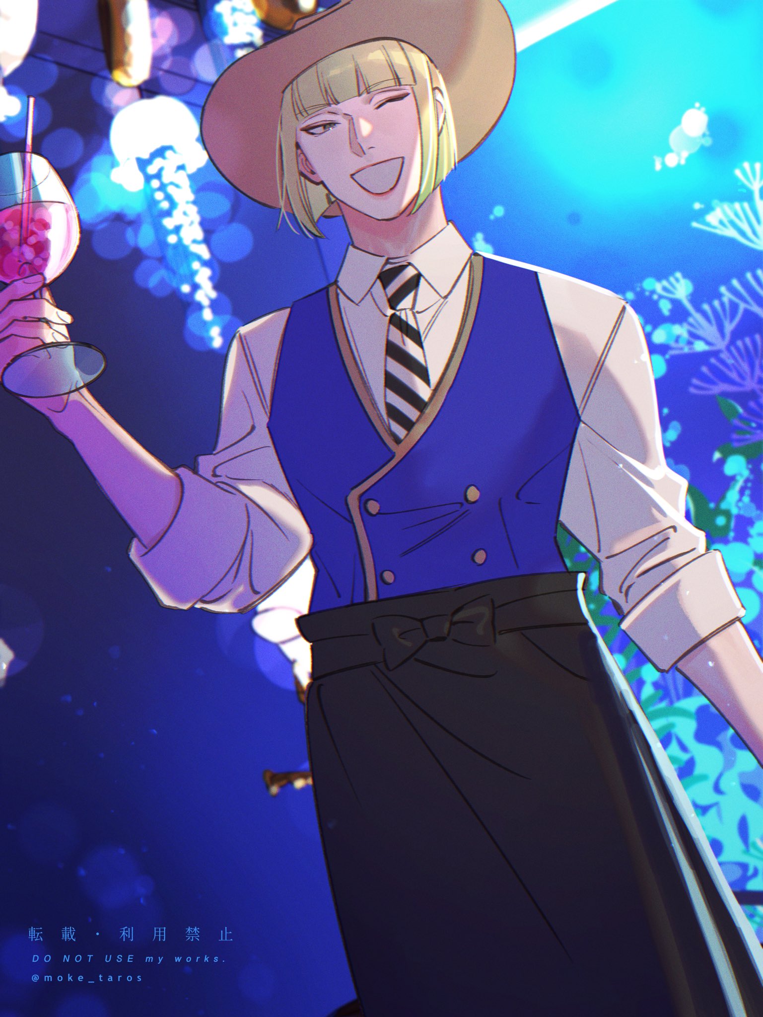 I think Azul was always meant to be sensual and seductive, but the Western fandom never realized this? The way he acts and talks, how he makes deals and convinces others, how he imitates Ursula. I think he was always meant to act more seductively and provocatively. But the Western fandom has a very nerdy, loser-like view of him, which I don't think fits the image he wants to project, even if he is that too, especially when he loses or exaggerates when he wins! Azul is quite complicated, as are the people surprised by his muscular and strong art style, even though it's already been said in the game how strong and muscular he is, and even Floyd has said this, but people don't pay attention to it.