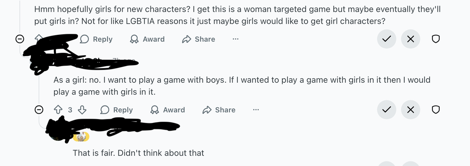 >>547950626well, those people should open their fucking eyes and go find games that actually do fit that instead of whining uselessly and coping by headcanoning male characters as women. reverse 1999, path to nowhere, arknights, and limbus company are all solid enough choices>>547994294>male characters in gacha are what represent women's interests, which is why the vast majority are all female characters, because those are men's interests.But they're too high up on their horse to realize it.100%. it's because lgbtqfags forget that they're a minority and that the vast majority of women are indeed interested in men. too far up their own assesi'll add that wanting otome games to pander to fujoshi (or the other way around although i've never seen it go that direction) is retarded and the two should be kept separate