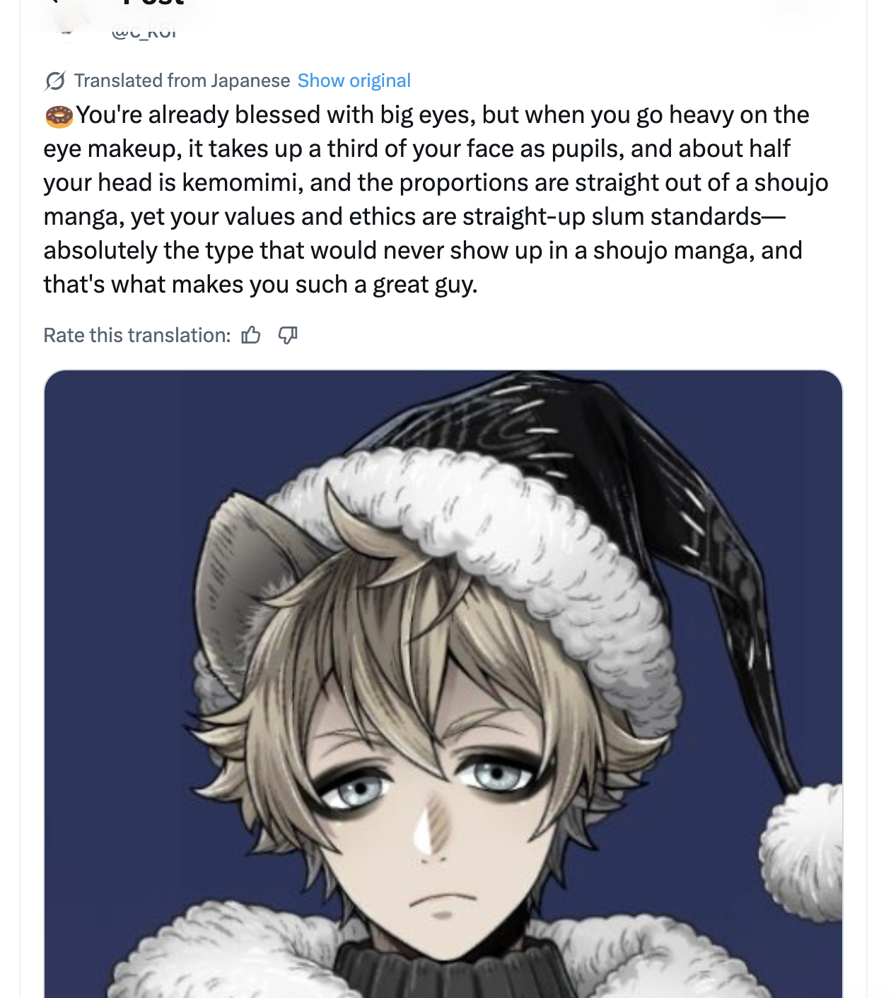 >>548359712Yeah can't really say anything, hope she's having fun and living her best life, but she was at her peak when I first got into Twst and it's kinda lonely seeing people move on. Hopefully the anime will bring in some fresh doujin artists. God knows there's enough content to go off of.
