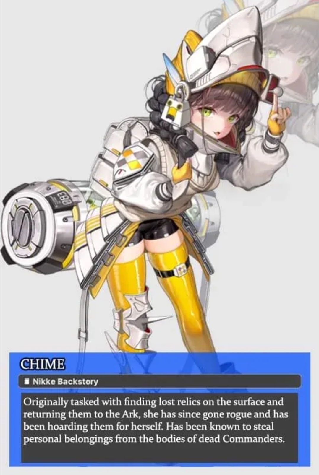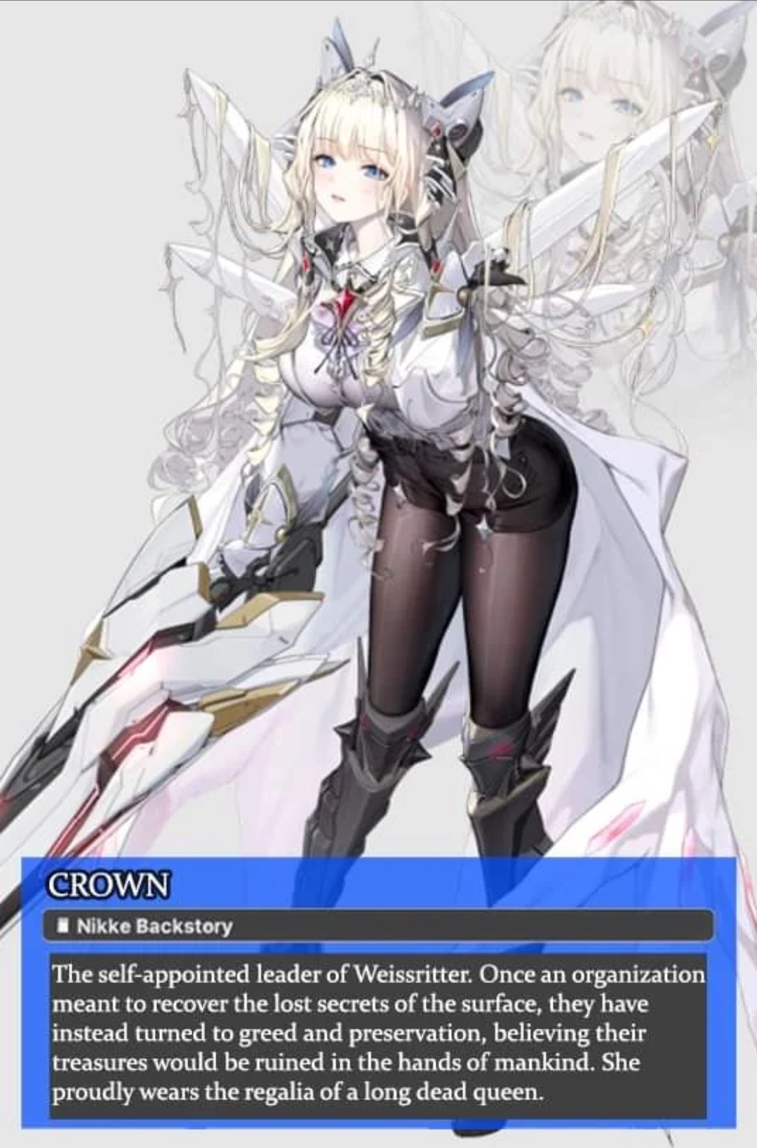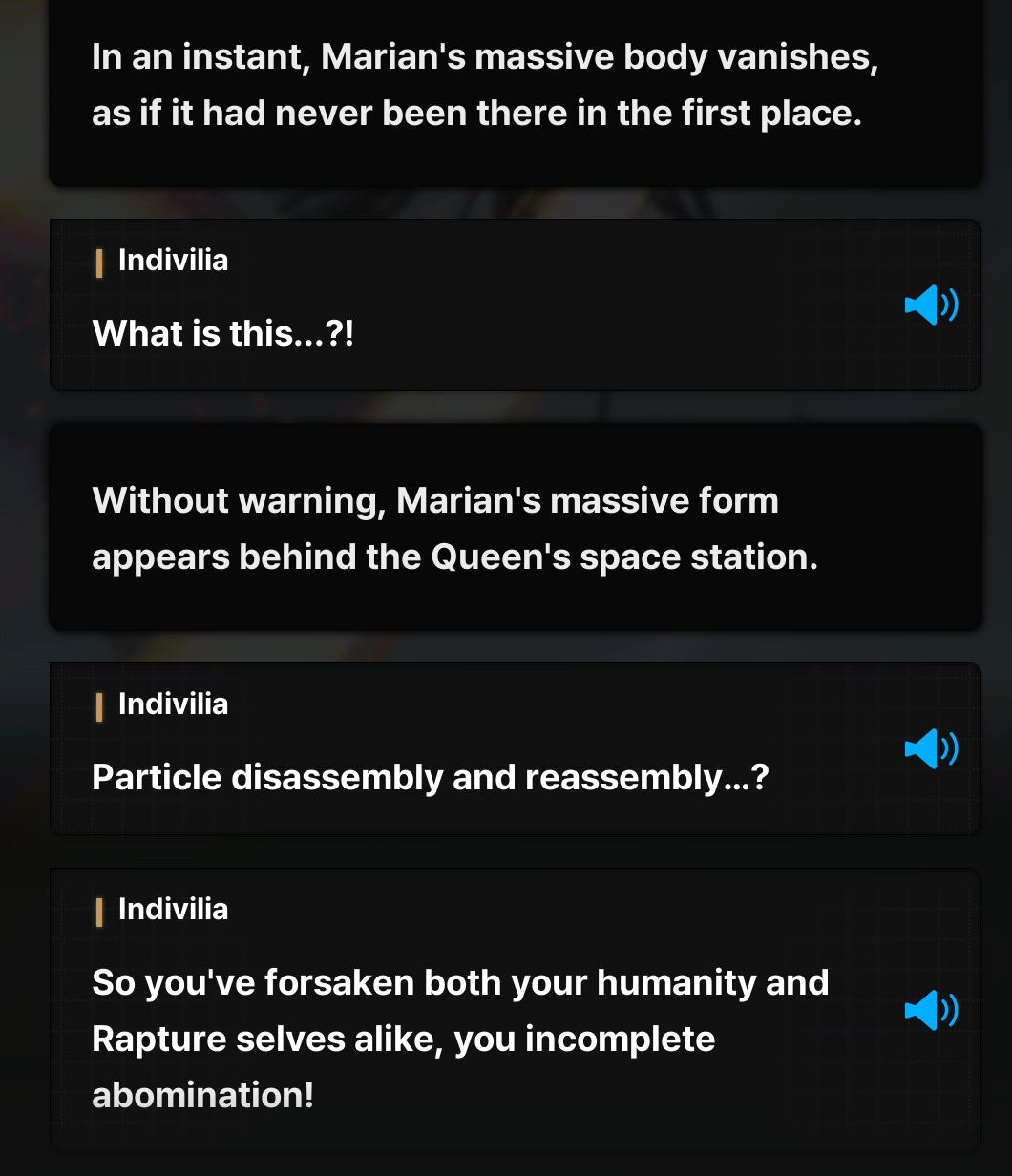 >>546081263>humanityShitty EN translation all over, she says "human imposter" there.She has transcended both nikke and rapture becoming neither. Show's she's going all out and tapping into higher powers at the expense of her self identity, of not appearing as a monster before others.As to why Indivilia knows such details about this, beats me.