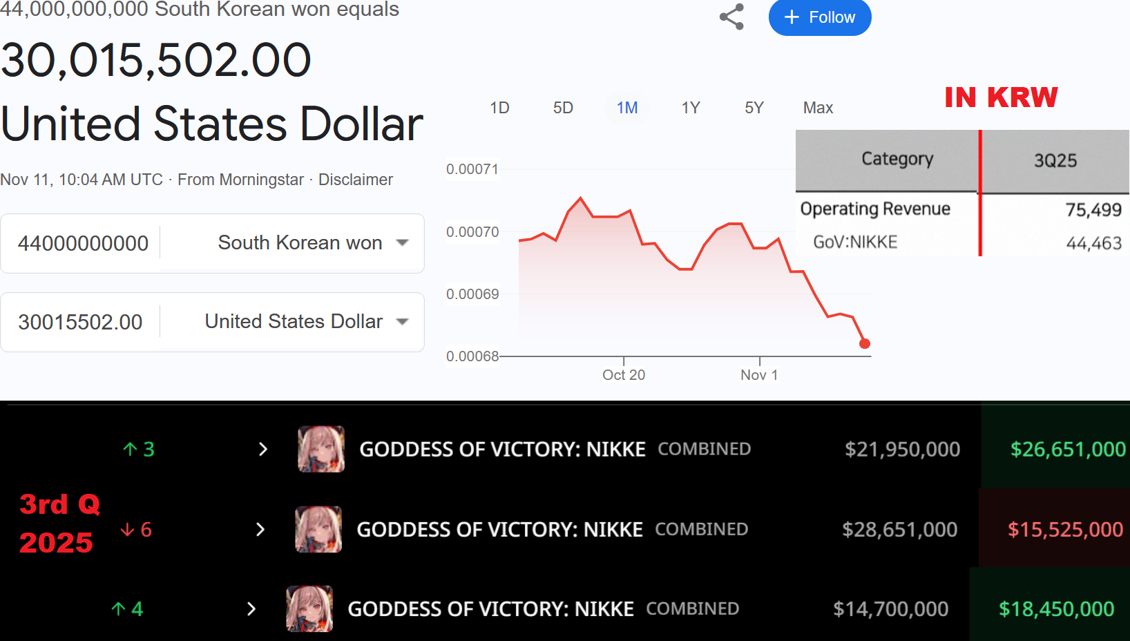 >>546108906Game gross sales are up 30% from the same period last year for Nikke Operation income (Gross sales minus expenses) are up 40% From Last year SU is being successful