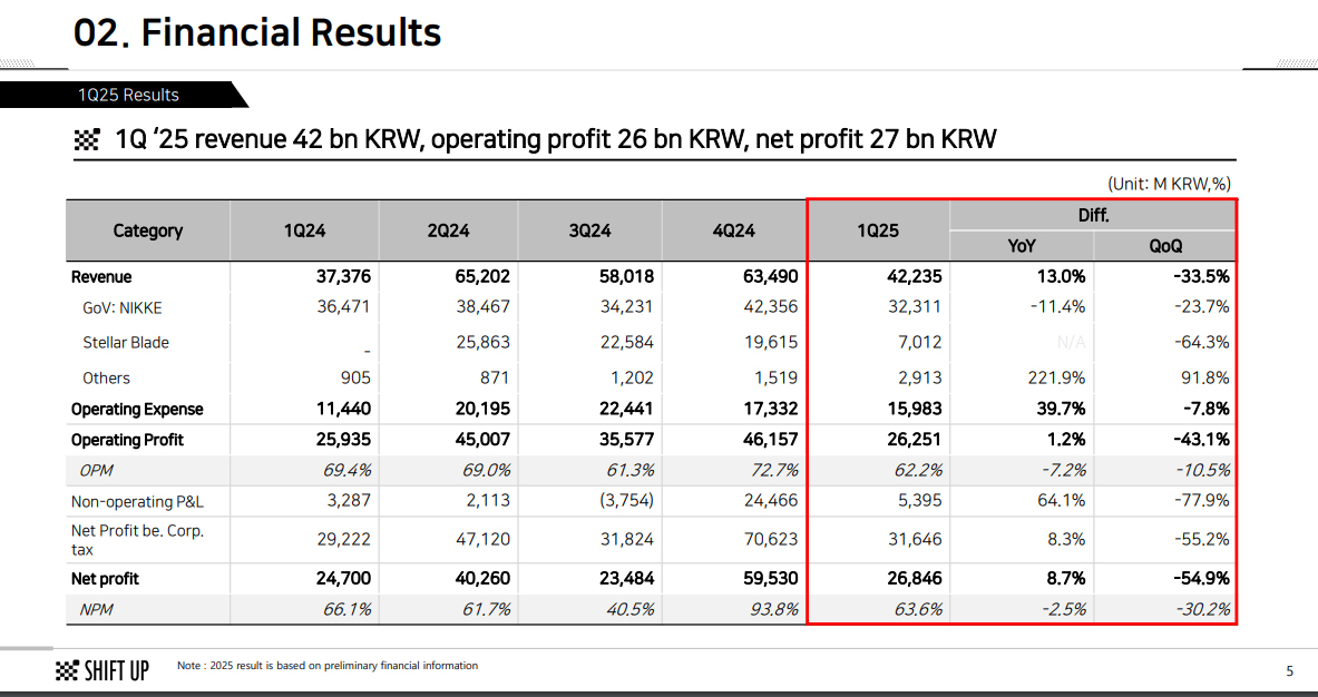 >>546109489The first earnings report is Q3 2024. My guess is that's when they became a public company. Or else, Korea only makes you list this information for a year or something.https://shiftup.co.kr/eng/ir/ir.phpYou can find this information on basically any website for a publicly traded company though.