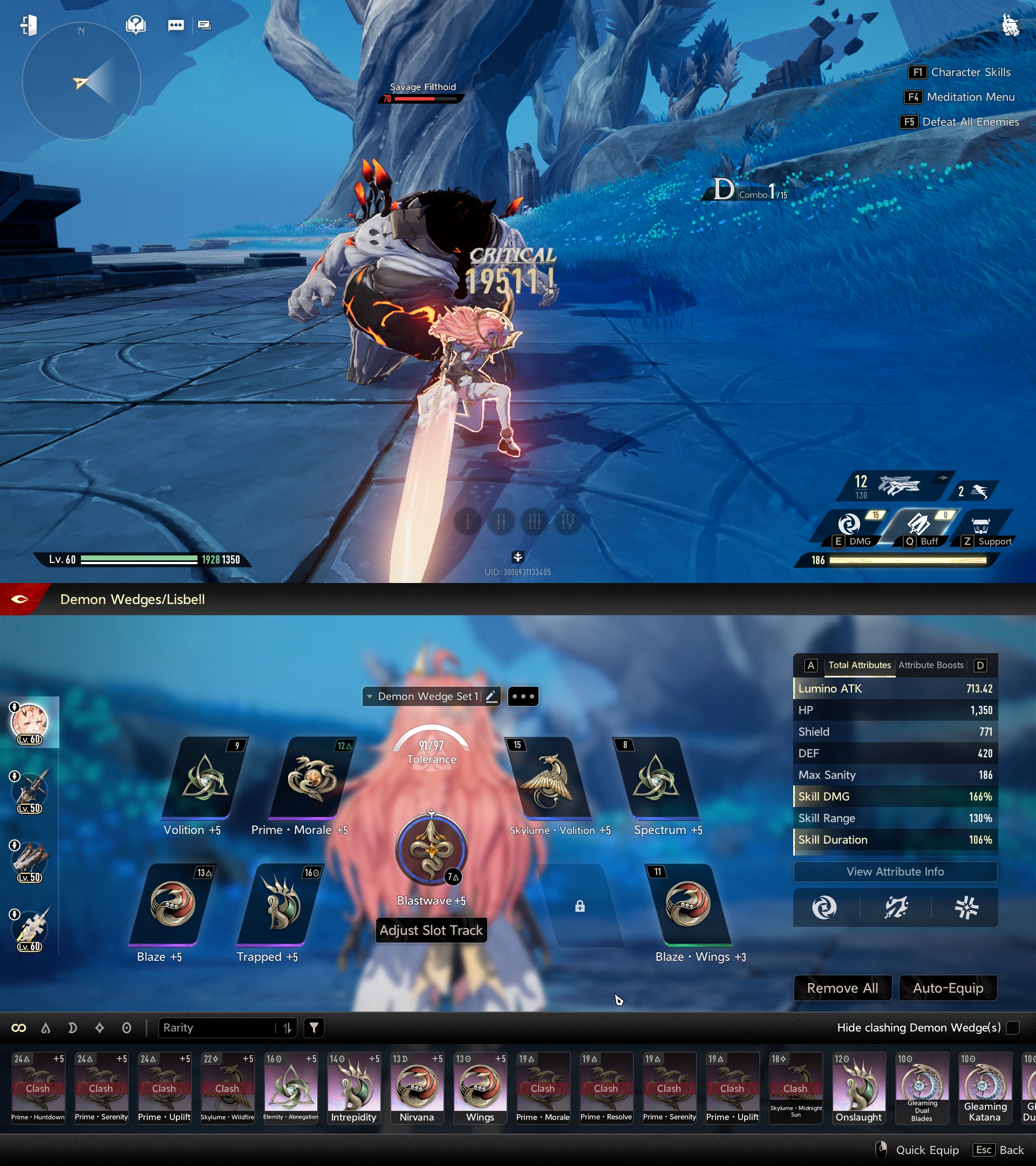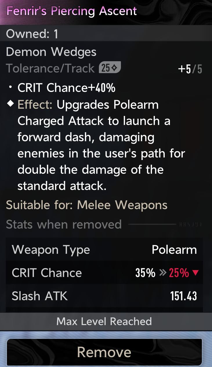 >>546084565charge attack wedge from theater, you need to be trial lv 50 to buy it. get it ASAP with the +atk speed and +charge attack speed wedges to fly through the air faster than helix jumping.