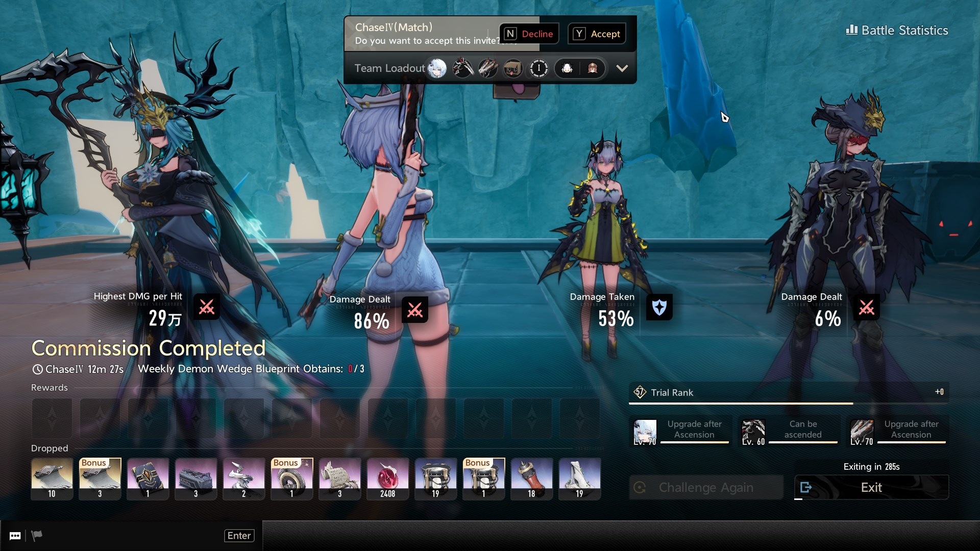>im at the point where im I6ing characters I have no intention of ever using just to gain 1/30th of a rankTrial Rank 62+ is a fresh kind of hell.
