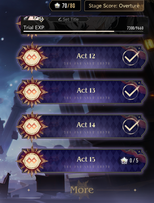 Anyone struggling with the Theatre, get to Trial 60, you've got 2 weeks time to get it done. You'll breeze past everything up to Immortal Act 15/17~ Getting to 60 should arguably be the number 1 thing on your priority list. It speeds up farming, you get more mats, better drop rates, progress through endgame, spam clear the maze at the highest diff for millions of coins, etc