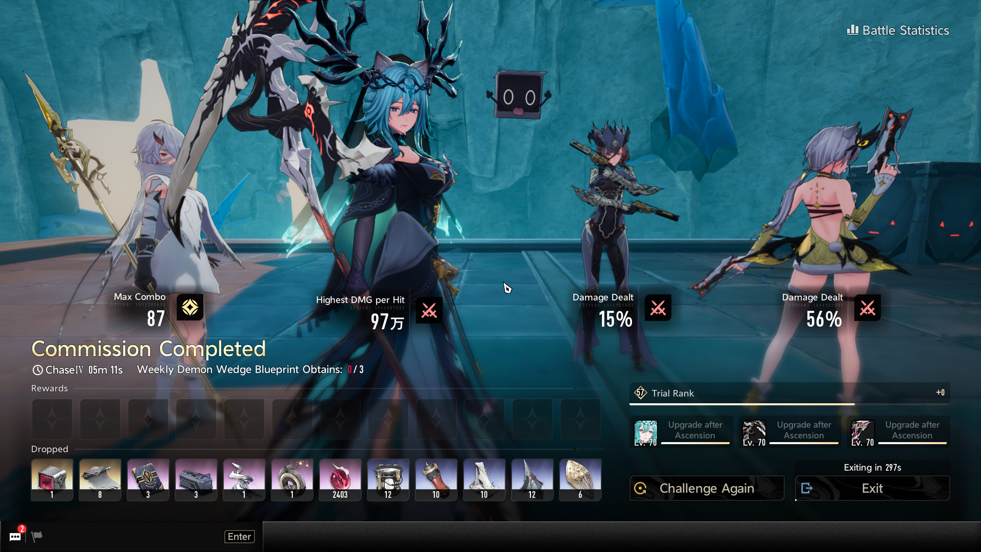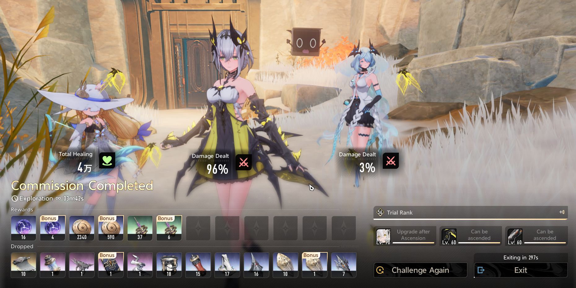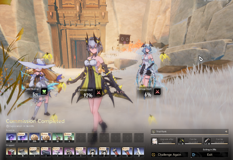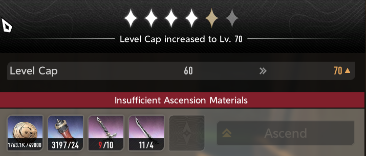 >ascend a character from 50 to 60>6 purple items required>3 waves of Exploration in a single run, done>ascend a weapon from 50 to 60>6 epic grips required>18 blue grips required to craft 6 epics>get on average 2 blue grips per run>9 runs needed for one ascensionWhat the fuck