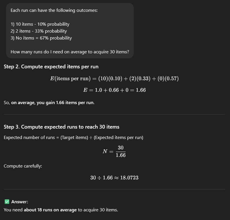 >>54616615230 thoughts in about ~20 runs average seems to check out with AI math.