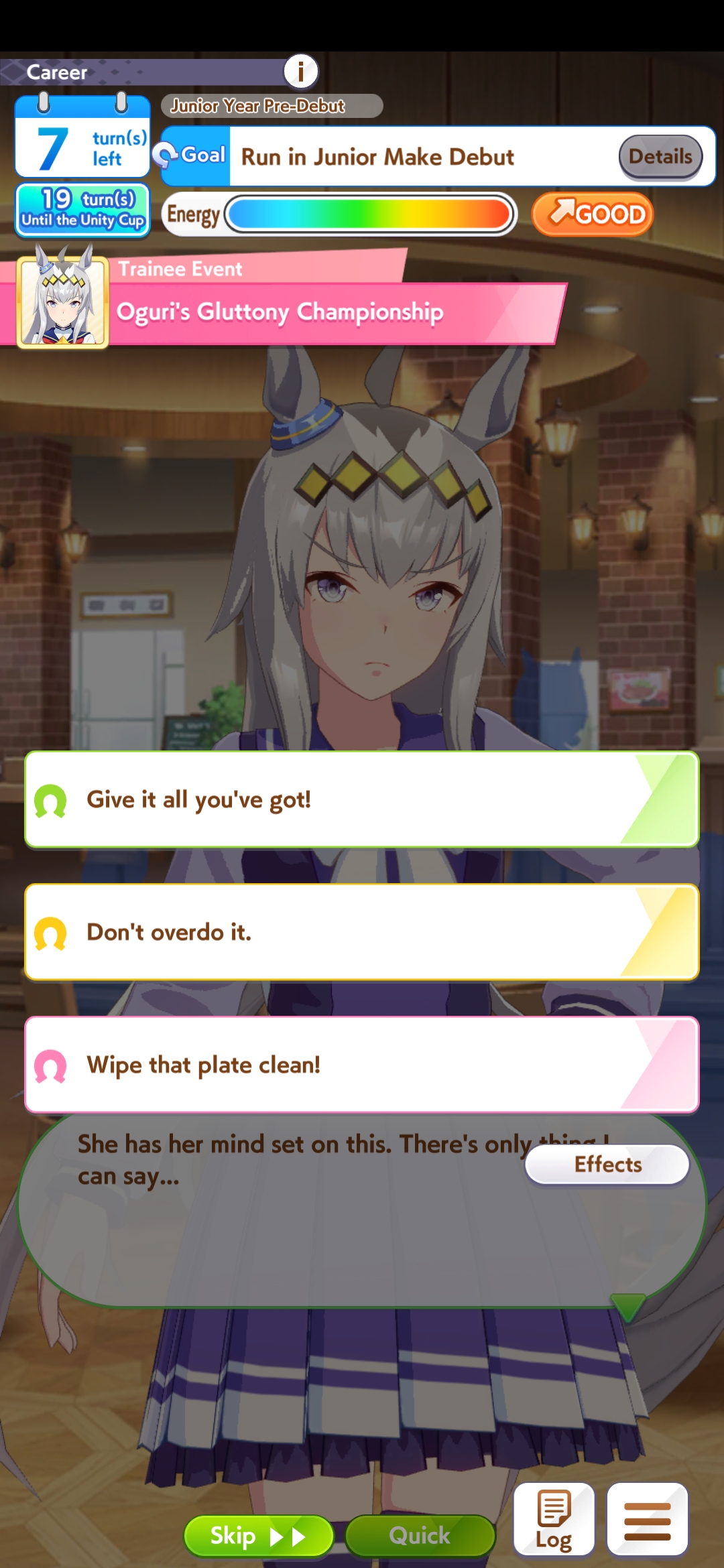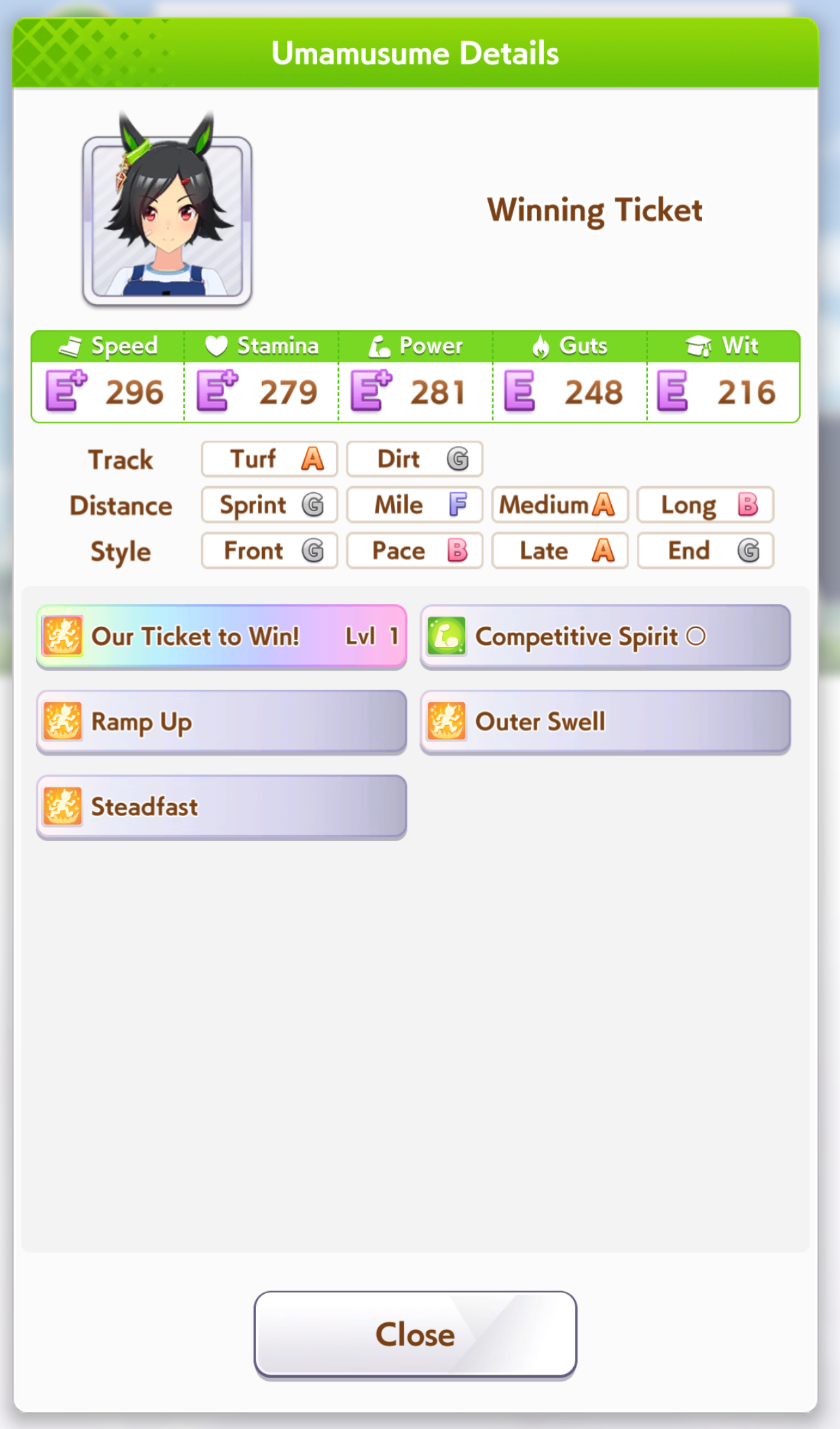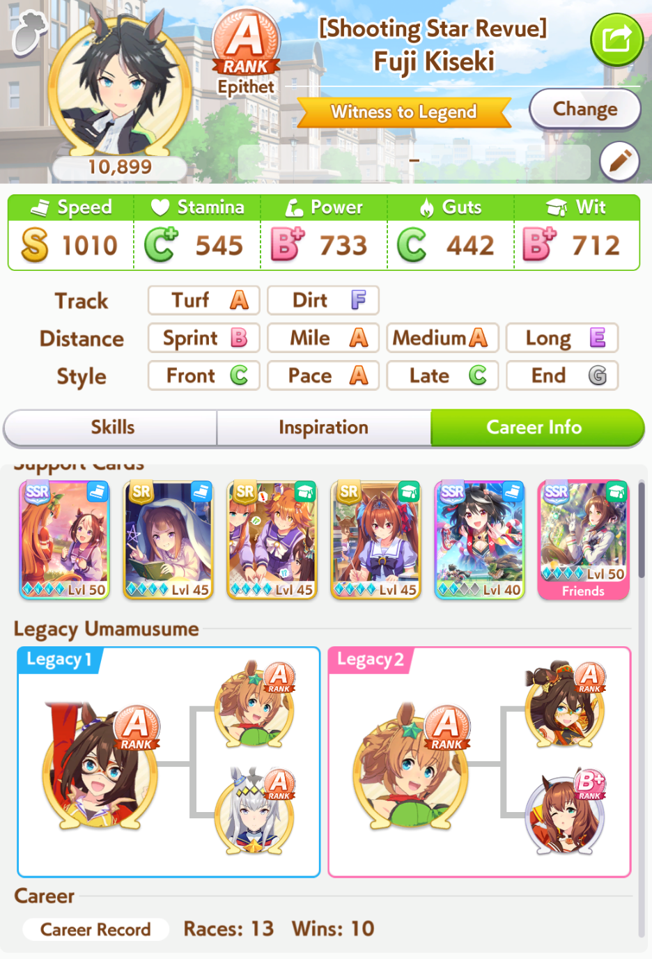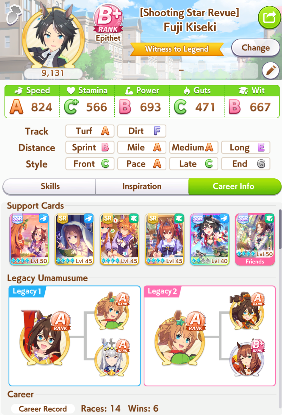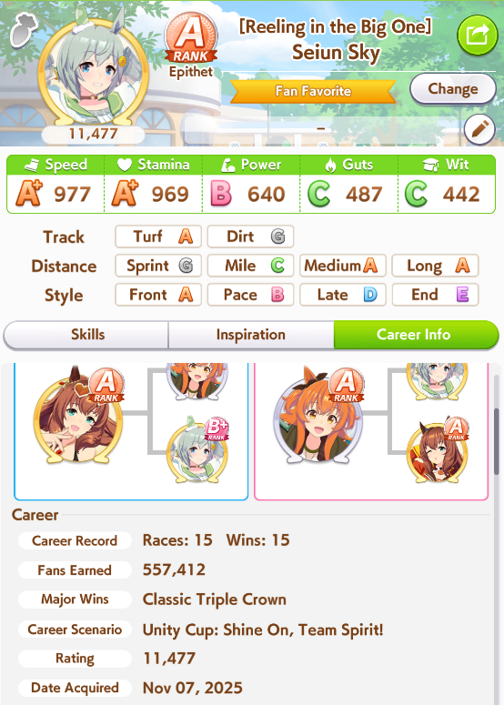 >>546151290Also one of her outfit events has guaranteed charming now or I've just been incredibly lucky to get it 3 times in a row. The free energy/stats event is great and 25 (+racebonus) speed and power for winning an extra G2 and G3 is Nice too.