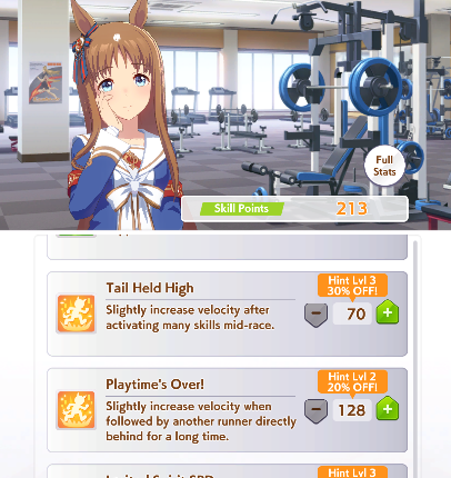 >>546166294I was in like 5 rooms and has not seen the groudwork, early lead concentration message pop upI suppose to get front runner savvy but brain farted on final skill buying screen