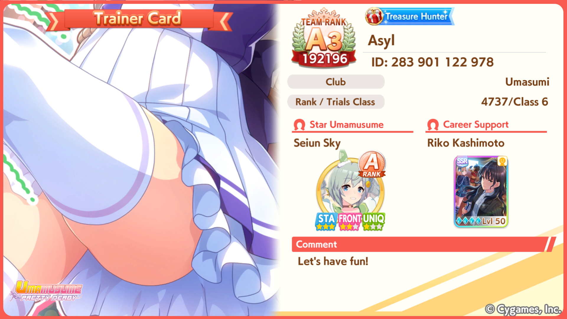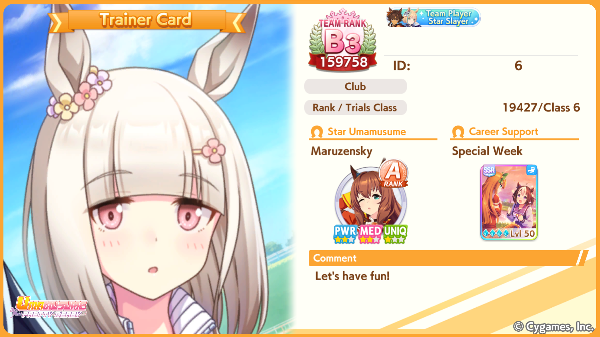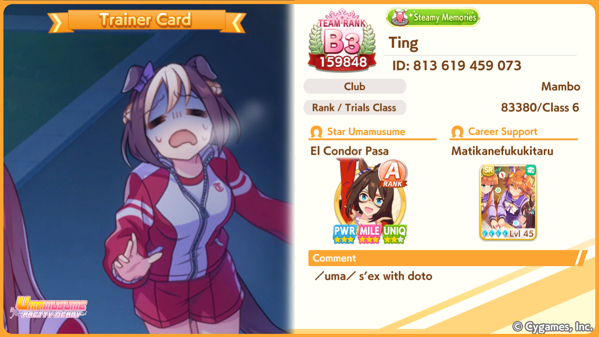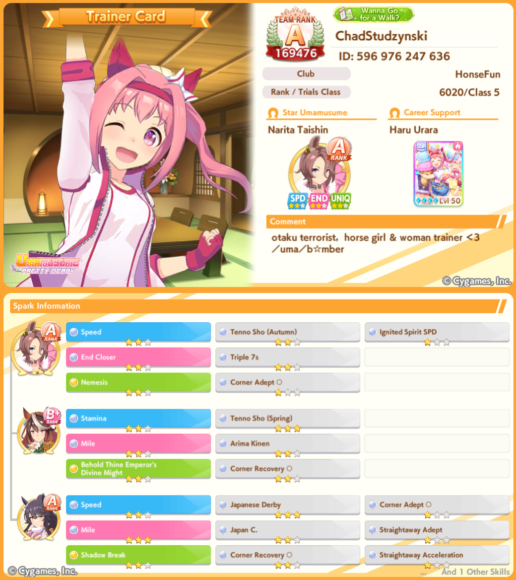 >>546167487Now that she's in the game I am bringing her SSR speed card to all my frontrunner runs just so i can bring her in her signature racewear to the unity races.