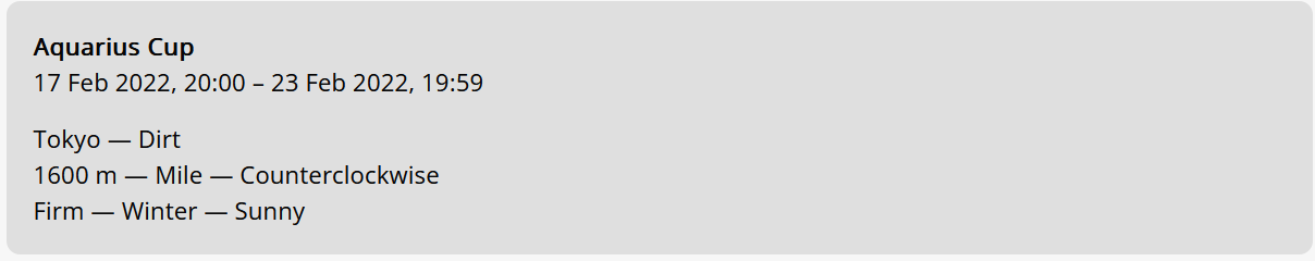 >>546165819>can't get Miss Perfect if you go for this bonusI will literally never do this. I'm more likely to do 12 dirt inherits to get the Breeders Cup trophies on Daiwa than I am to do this.