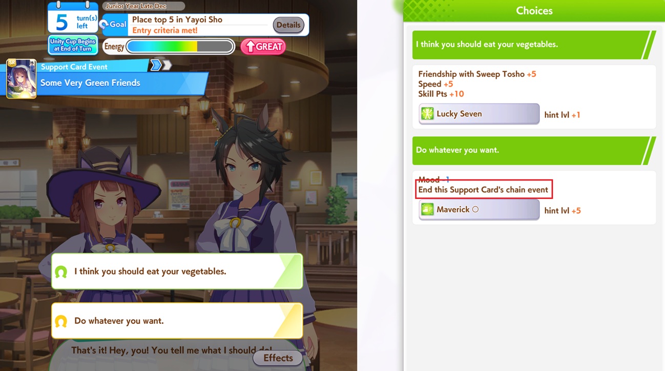 >>546157320if you want energy dual pal and run tazuna.If you are always low on energy you should run a Wit deck and "rest" on wit until a good stat rainbow appears.