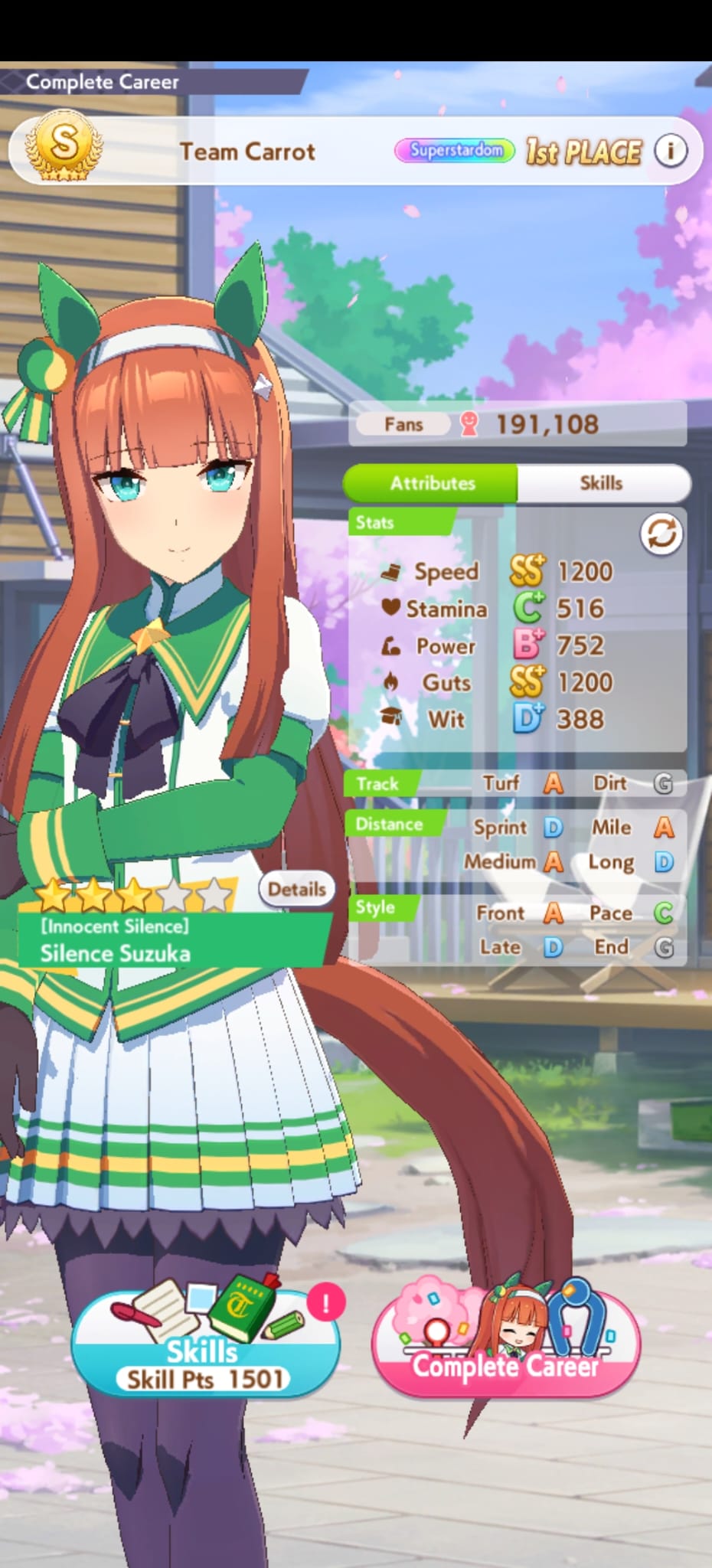 I guess to make a long TT Raisu I can just get 1 stam card and hit 1k, this run sucked I lost 1 unity race too