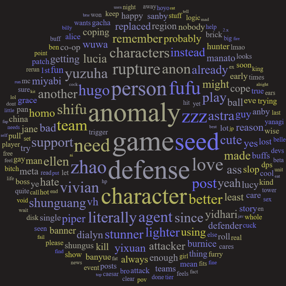 >>546158735>away hoyo rat>play ball eve trying>defender cuckyou're the best poster here, word cloud anon
