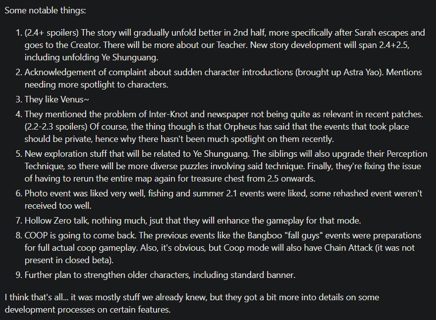Transcription/Translation of the 40-minutes CN-Only Dev Talk on Bilibili, some notable things: