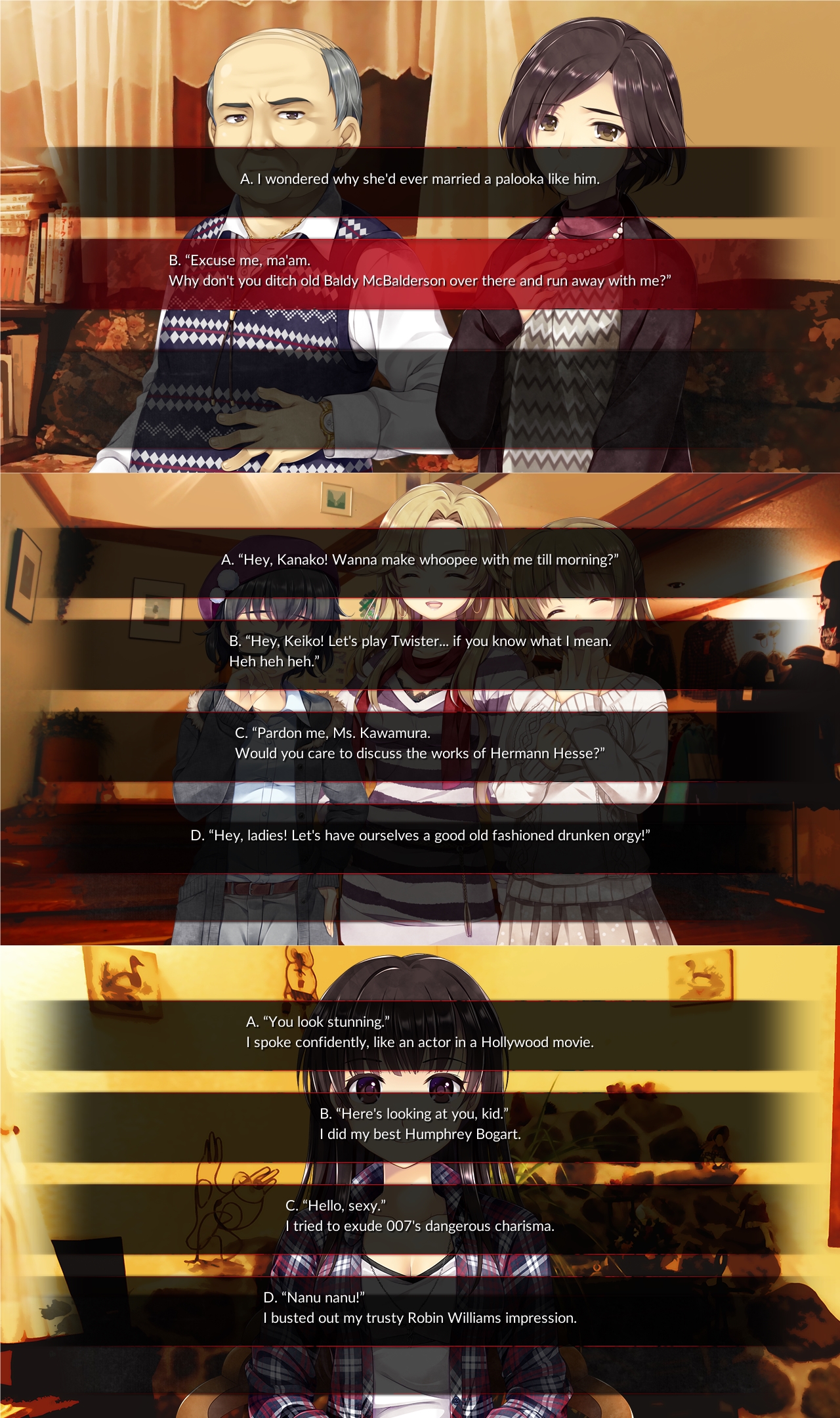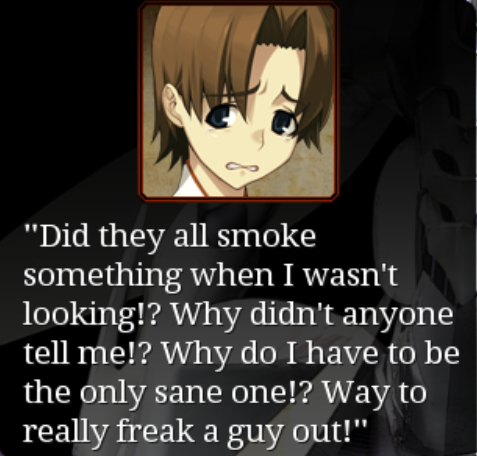 Ges with ridiculous options juxtaposed with normal ones like this? I really like MCs constantly battling not to do insane bullshit internally.