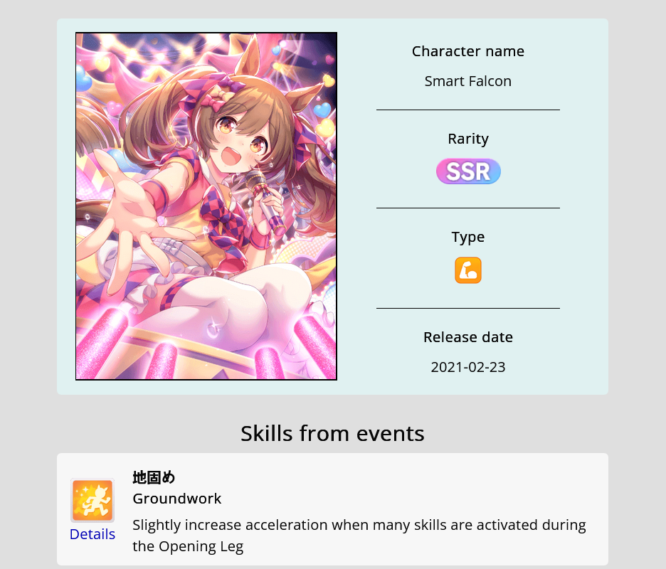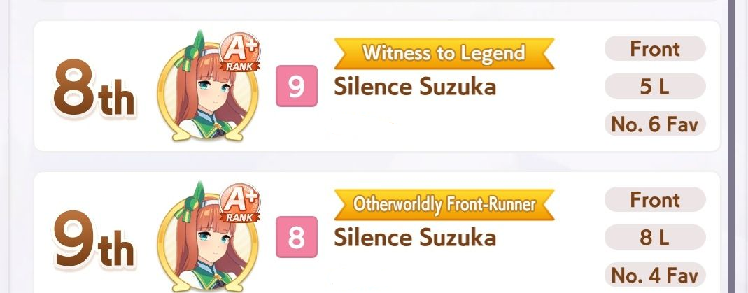 >>546189249Nishino Cunny is one of the go-to parents for her ult. She's like early Taiki and OG Maru.She's also very good in Sprints.